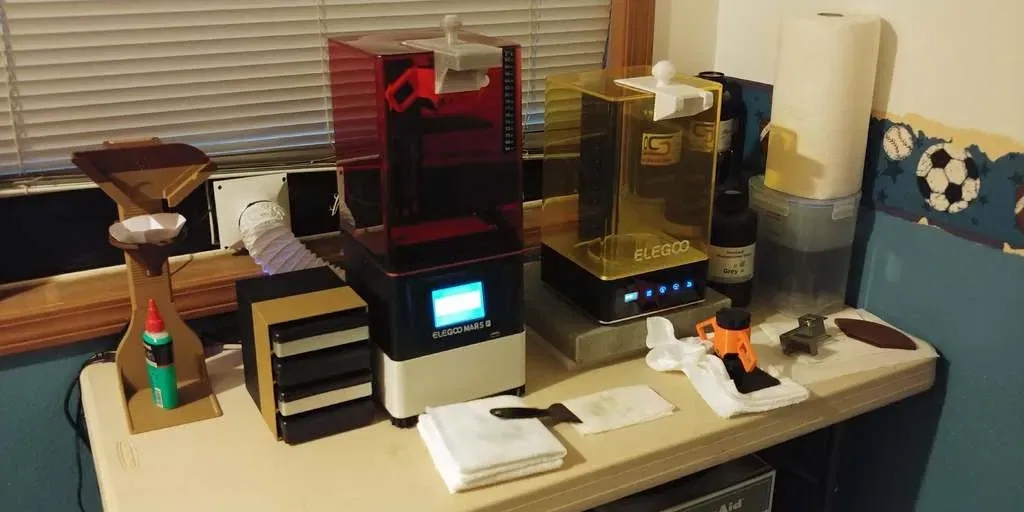 19. Góc in resin của tôi trong phòng. Đây là quạt tôi đã mua: https://www.amazon.com/dp/B009OWRMZ6 Bộ điều khiển tốc độ: https://www.amazon.com/dp/B07T9BLJ7L Loại ống tôi sử dụng: https://www.amazon.com/dp/B000LRHCLW Tấm lọc carbon: https://www.amazon.com/dp/B07WQZVZ2S