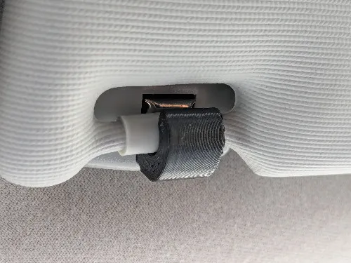 Cái kẹp trên chiếc Skoda Fabia của tôi đã bị gãy lần thứ hai. Tôi lái xe trên một tuyến đường mà mặt trời thường chiếu từ bên hông/phía trước. Vỏ, kẹp kim loại và các ốc vít được tái sử dụng từ bản gốc. Mô hình yêu cầu một cấu trúc hỗ trợ và nên được in như hình để đạt được độ ổn định tốt nhất của móc.