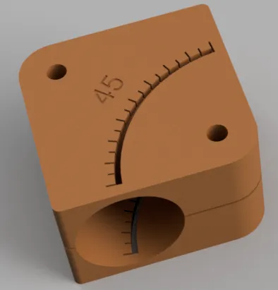 Đây là một jig cho một khúc cong 70mm. Jig này được tạo thành từ hai phần được kết nối bằng hai bu lông và đai ốc M8. Nó có các dấu hiệu cho mỗi 5 độ nhưng bạn cũng có thể sử dụng một thước đo góc để thiết lập góc của khúc cong. Tôi đã làm cái này bằng PETG để nó có thể chịu được bất kỳ hóa chất nào có trong dung dịch làm mát của máy cưa băng.