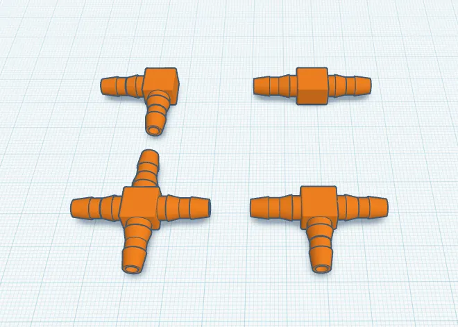4-way-join, T-join, L-join và một phép nối đơn giản cho việc tưới nước nhỏ giọt 4.6 mm.