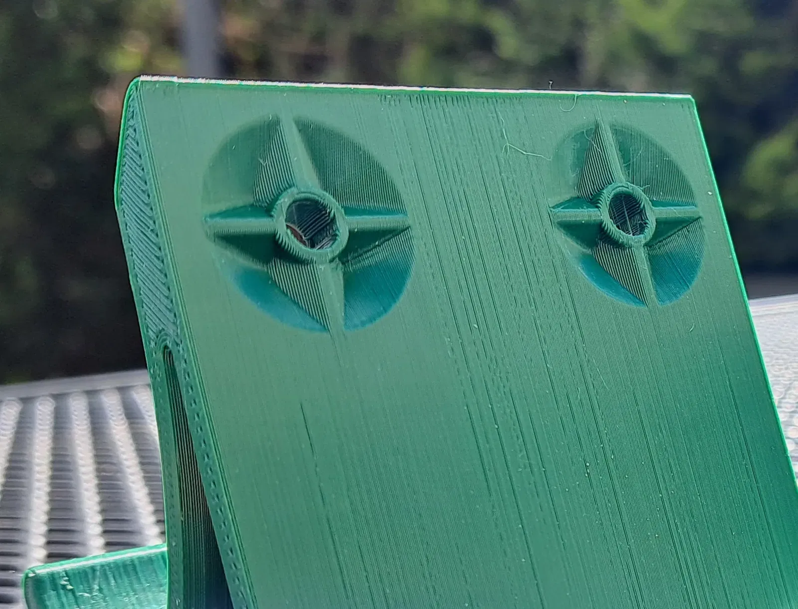 Tôi đã gia cố các lỗ lún bằng cách tạo ra một đặc điểm gân xung quanh lỗ. Tính năng này giảm lượng vật liệu lấp đầy trong khu vực này và đảm bảo có nhiều vòng treo gần nhau hơn, tăng cường độ bền.