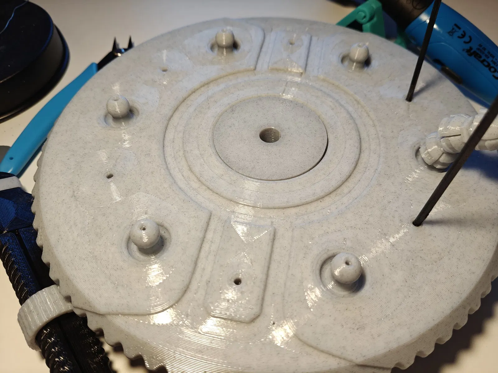 <https://www.f3d.vn/3d-model/57250-kep-rong-da-nang-cho-may-in-3d-va-son-phun Thiết kế vòng bi mà nó dựa vào đã được điều chỉnh cho bàn xoay này, nhưng tôi vẫn sẽ liên kết đến thiết kế gốc để tham khảo