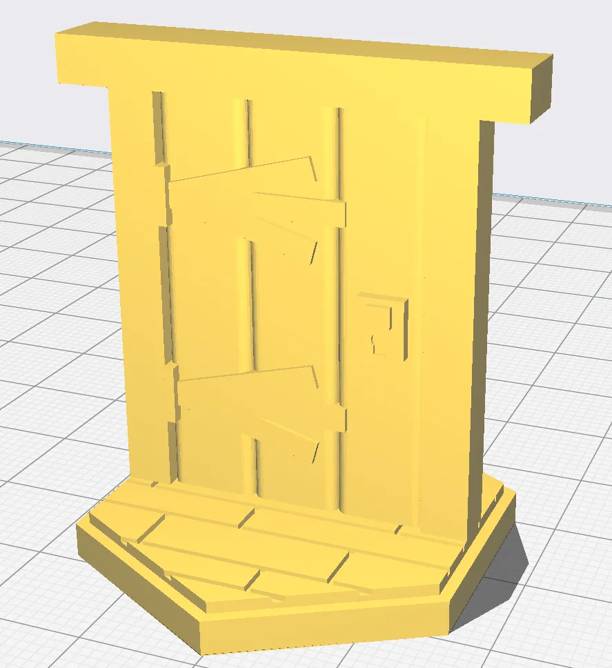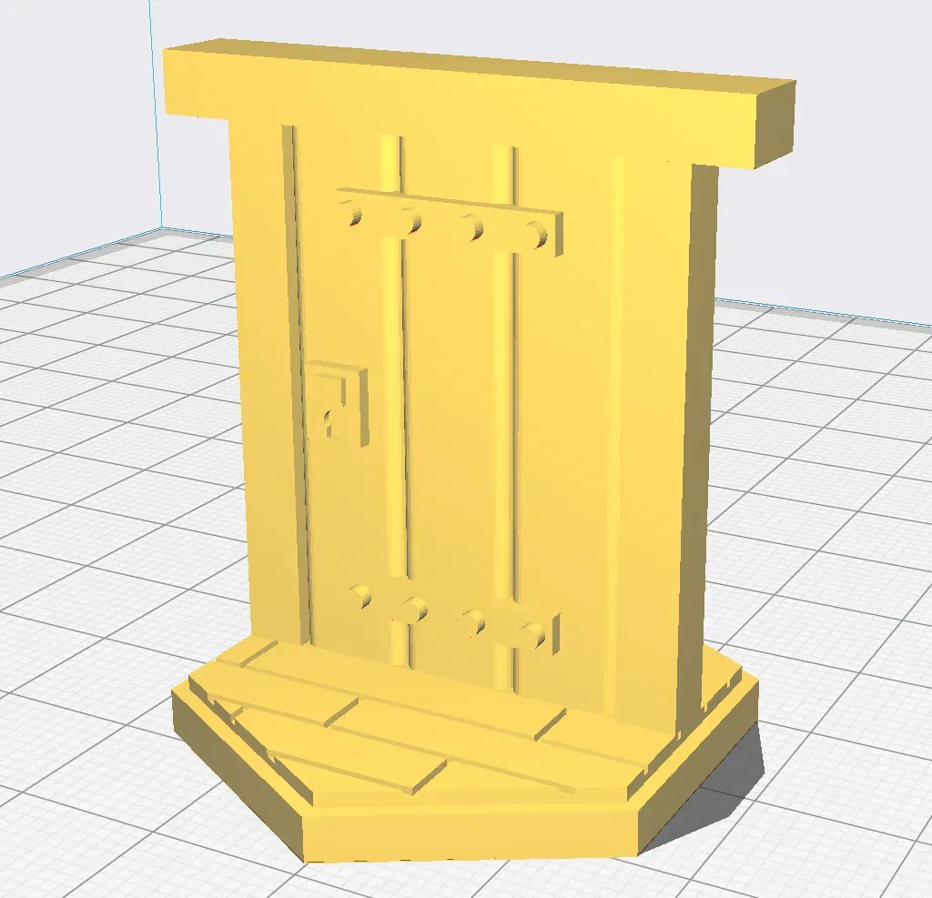 Đây là một viên gạch lục giác của một cánh cửa gỗ trên trục ngắn của một hình lục giác. Được thiết kế cho Gloomhaven.