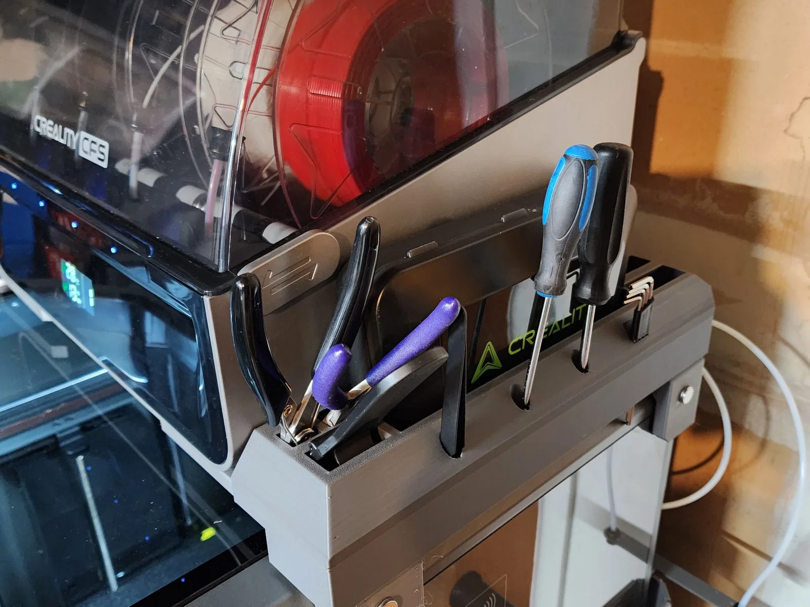 Một phần mở rộng cho "K2 Plus CFS Holder" của Stranula để lưu trữ bộ công cụ Creality đi kèm với K2 Plus cạnh bên CFS, và một vài khe bổ sung để lưu trữ công cụ riêng lẻ. Tôi cũng đã bao gồm một phiên bản không có khe công cụ để bạn có thể nhập vào Tinkercad và tạo ra giải pháp lưu trữ công cụ tùy chỉnh của riêng bạn.