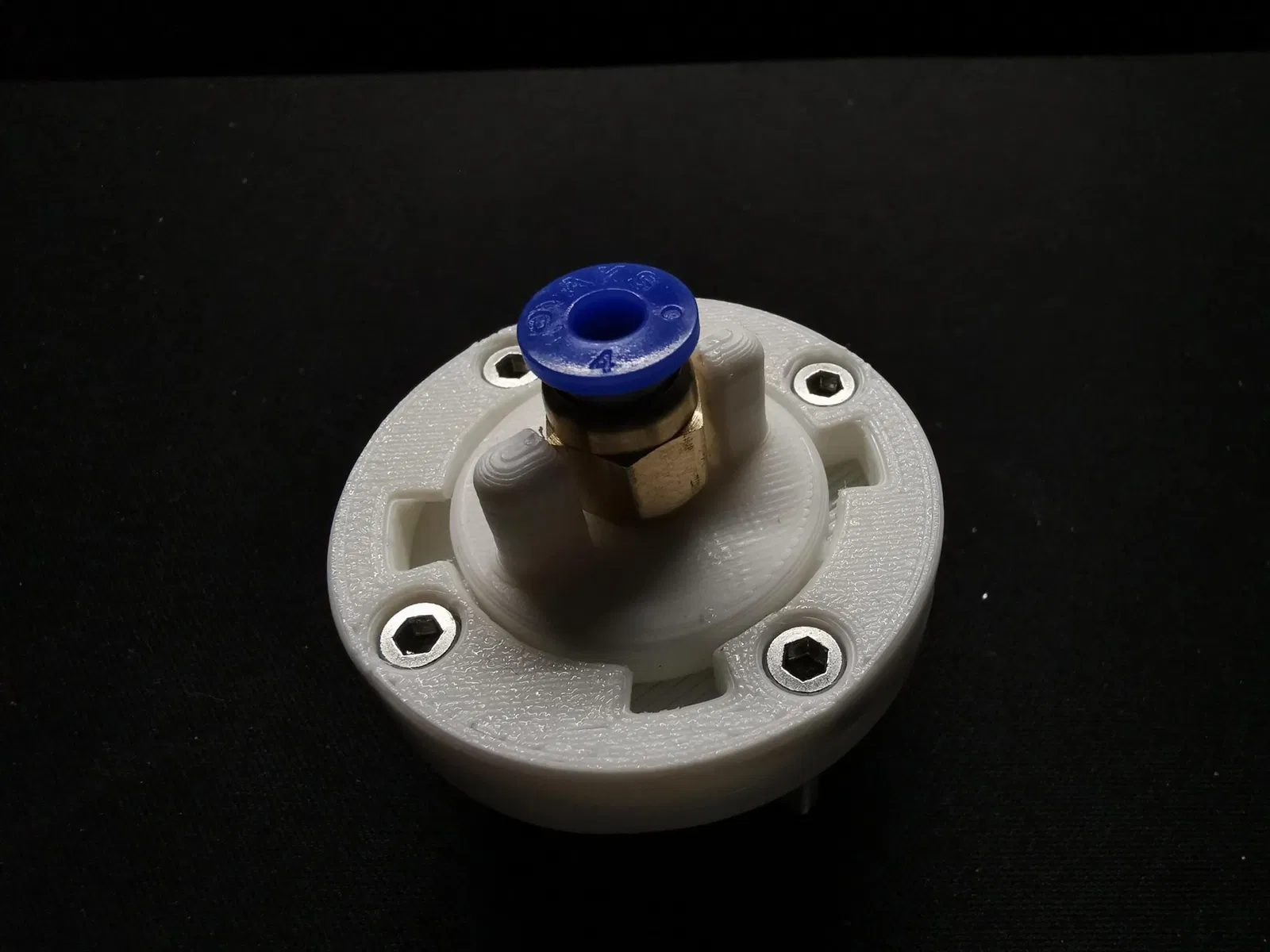 Những gì bạn sẽ cần: - 4x vít M3, tối thiểu 6mm dài nếu vật liệu của hộp khô của bạn dày 1mm, có thể dài hơn - 1x Fitting PC4-M6 (lý tưởng với một khe lục giác nhỏ bên trong fitting) - vòng o-ring cao su 18mm OD, 14mm ID, 2mm (có thể coi là tùy chọn nhưng RẤT được khuyến nghị vì điều này cung cấp một con dấu kín khí VÀ một ít ma sát cho một kết nối chắc chắn. - tùy thuộc vào “Fitting-Plate” của bạn, chọn: 2x vít M3 nữa để dễ dàng xoay. - không có nam châm, không có keo.
