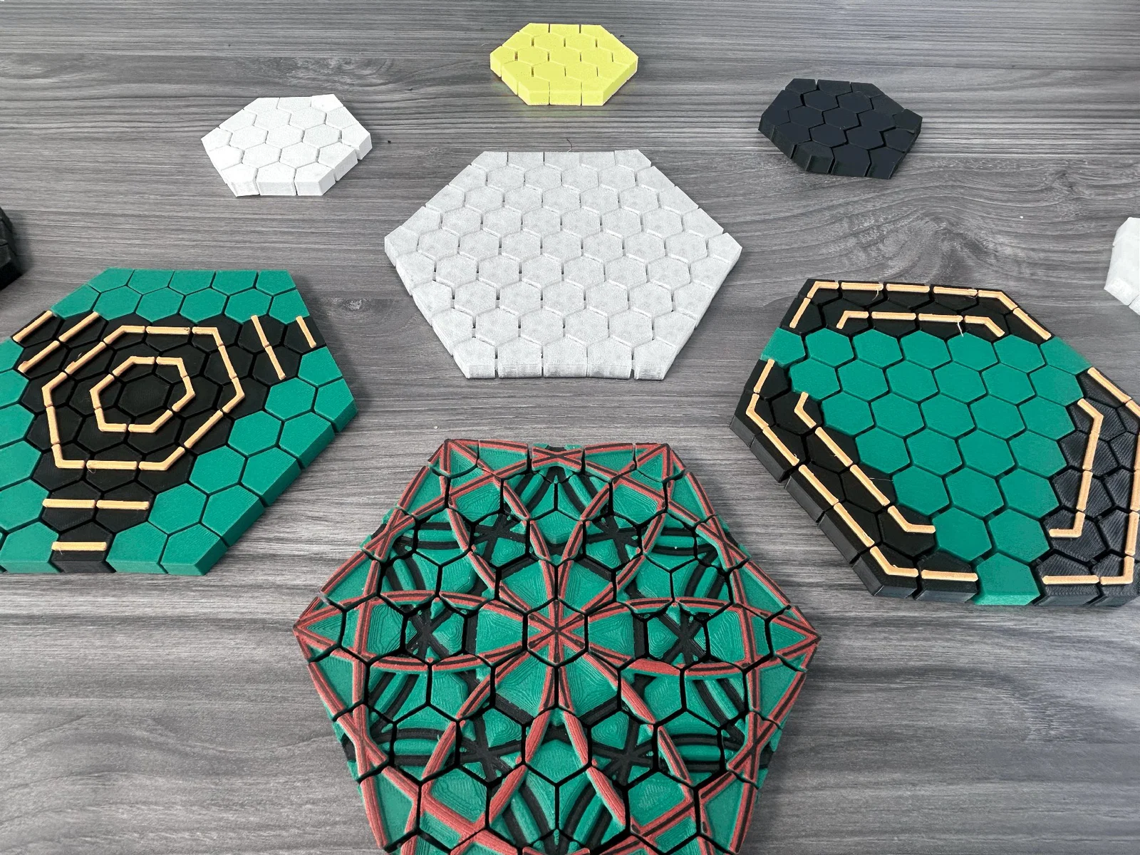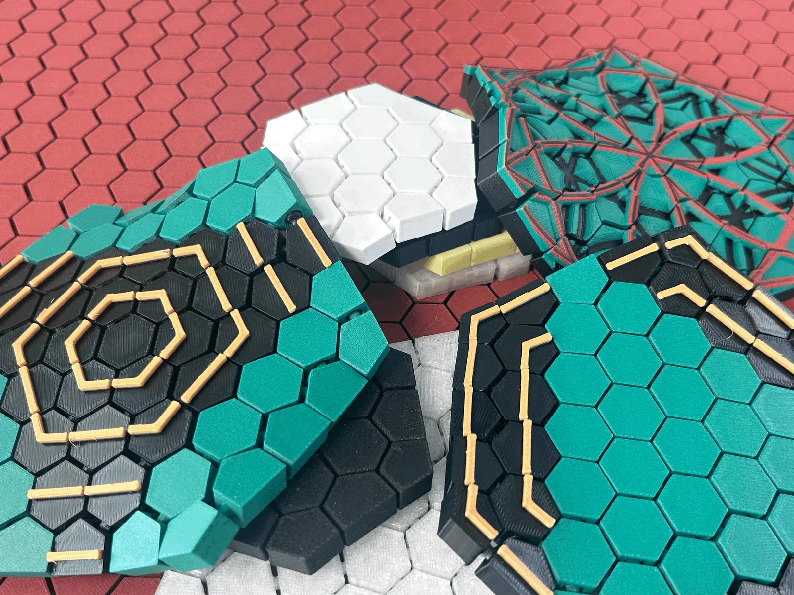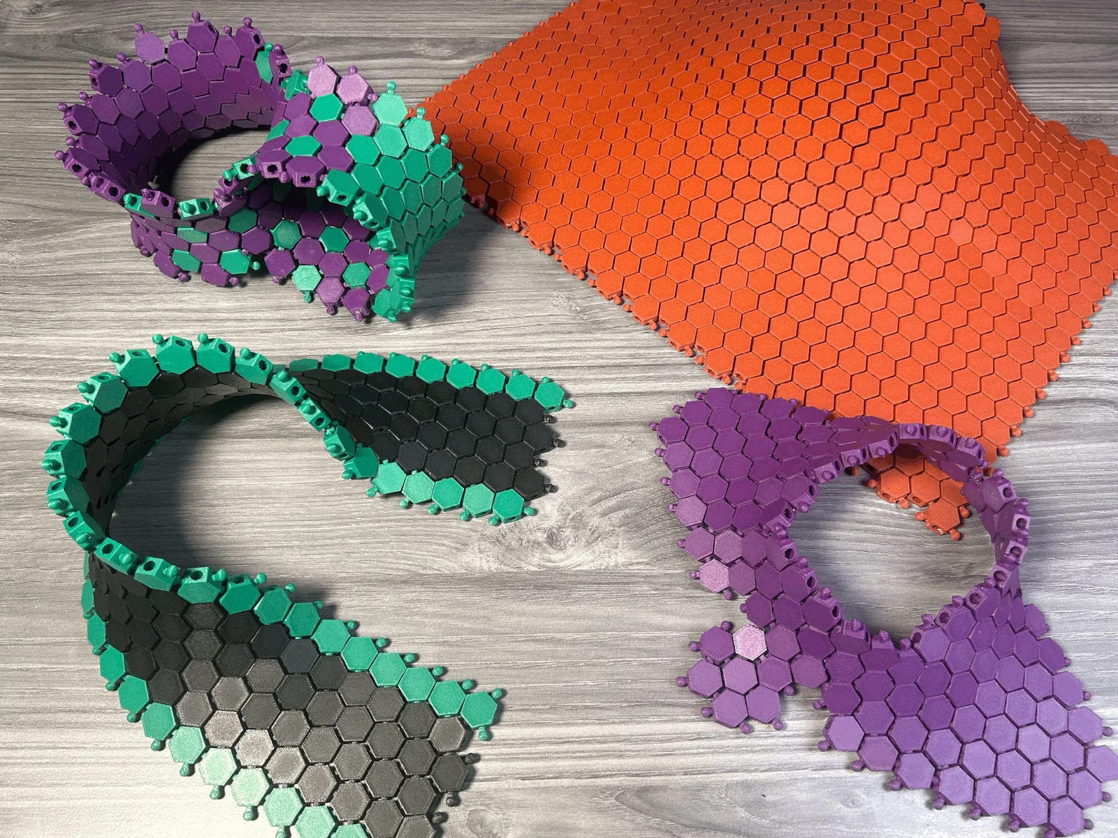 Thiết kế này được tạo thành từ các hình lục giác với các khớp cầu nhỏ có khoảng cách vừa đủ giữa bóng và tất để không bị dính trong khi in nhưng vẫn giữ mô hình ở vị trí trong khi in.