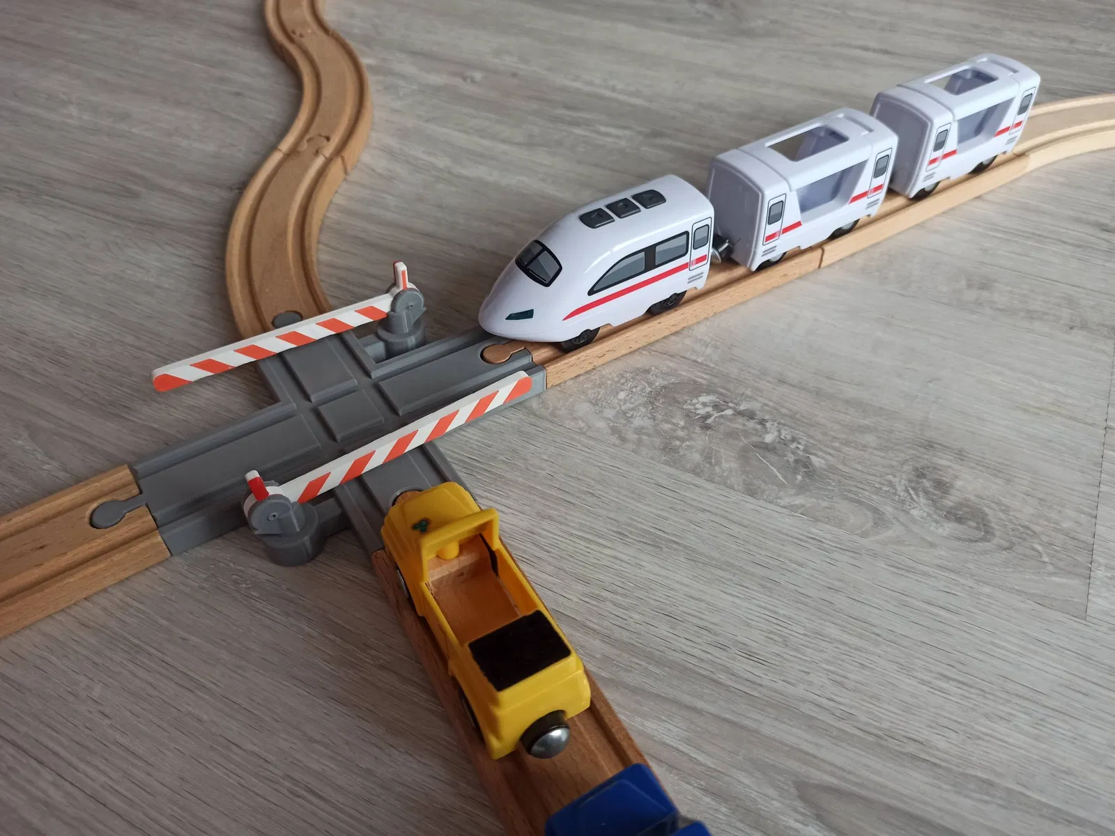 Đường ray gỗ cho tàu hỏa - Ngã tư đường sắt có rào chắn