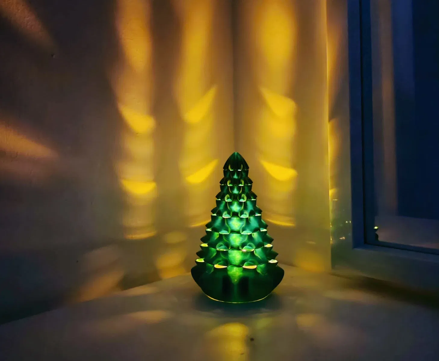 Một cây thông Giáng sinh đơn giản có thể in bằng chế độ vase bao gồm cả các khoảng trống, cho phép ánh sáng từ nến tealight LED thoát ra tạo hiệu ứng đặc biệt.