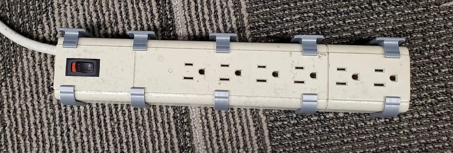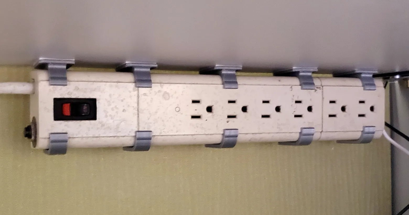 Một kẹp cho phép một bộ bảo vệ quá tải được gắn vào dưới mặt bàn hoặc bàn làm việc. Tôi đã sử dụng 5 kẹp để giữ bộ bảo vệ quá tải.