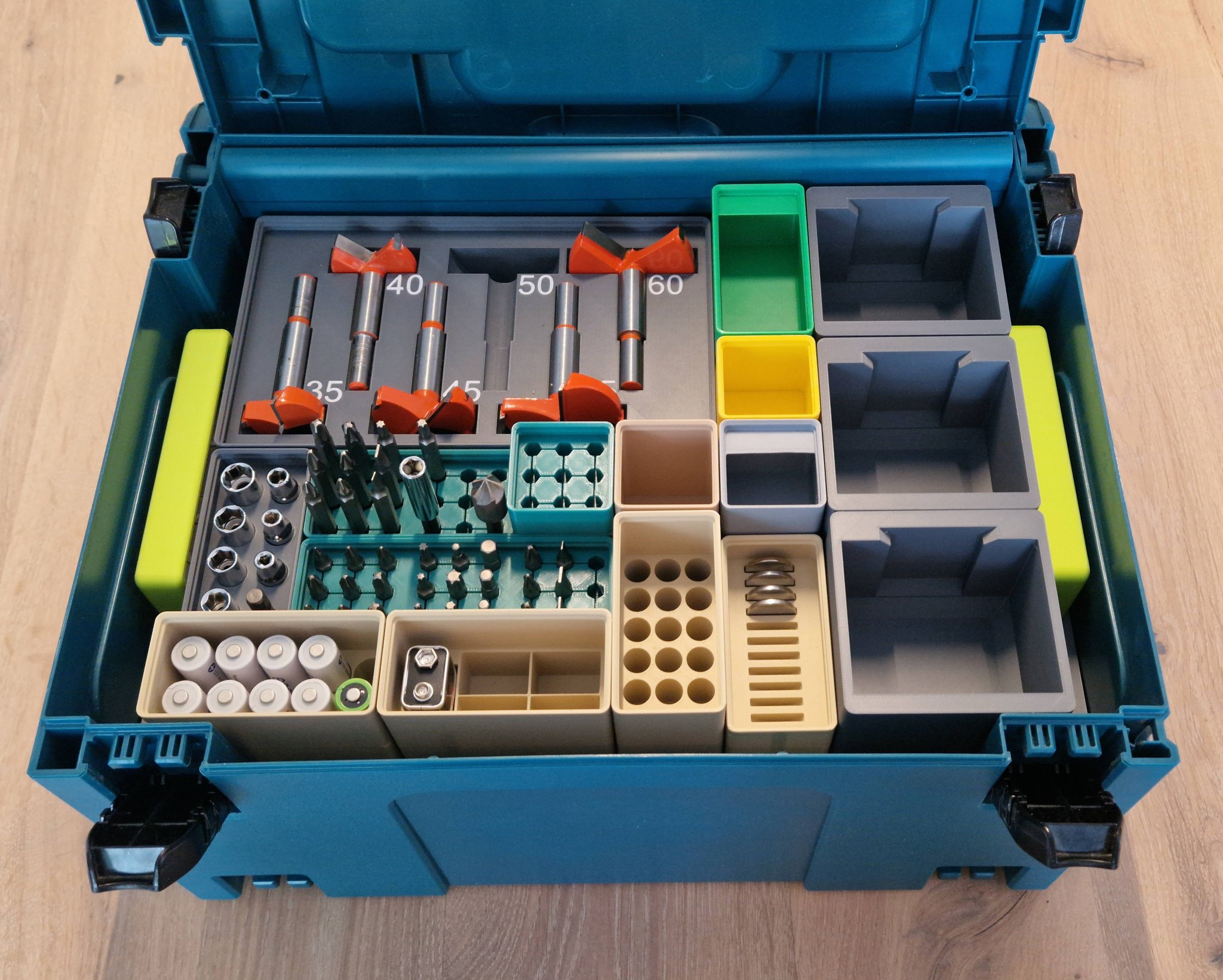 Tôi đã tạo ra phiên bản thứ hai với tay cầm tốt hơn để dễ dàng lấy khay ra. Cũng có một phiên bản không chia cho mỗi loại để in với bàn in lớn.