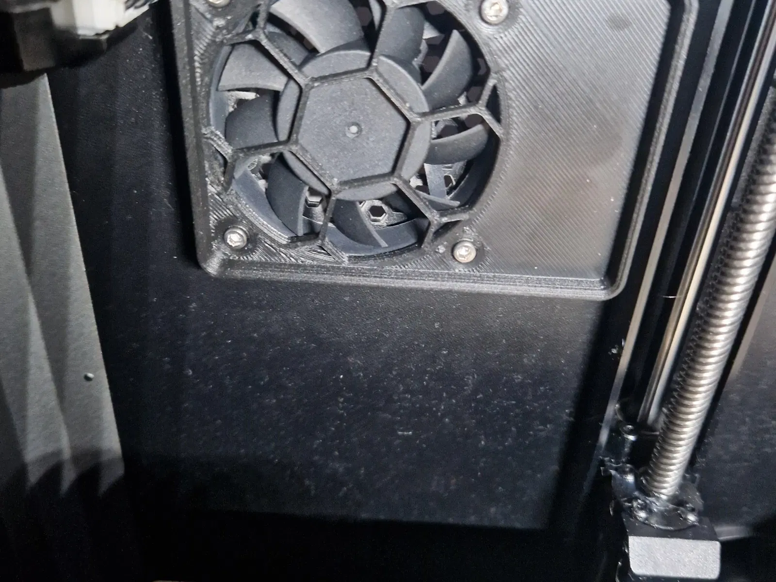 Quạt thông gió nguyên bản hơi yếu nên tôi đã làm một hộp lọc cho bộ lọc bọt carbon mỏng (5mm). Bạn có thể sử dụng vít quạt nguyên bản (tôi đã làm mất của tôi)