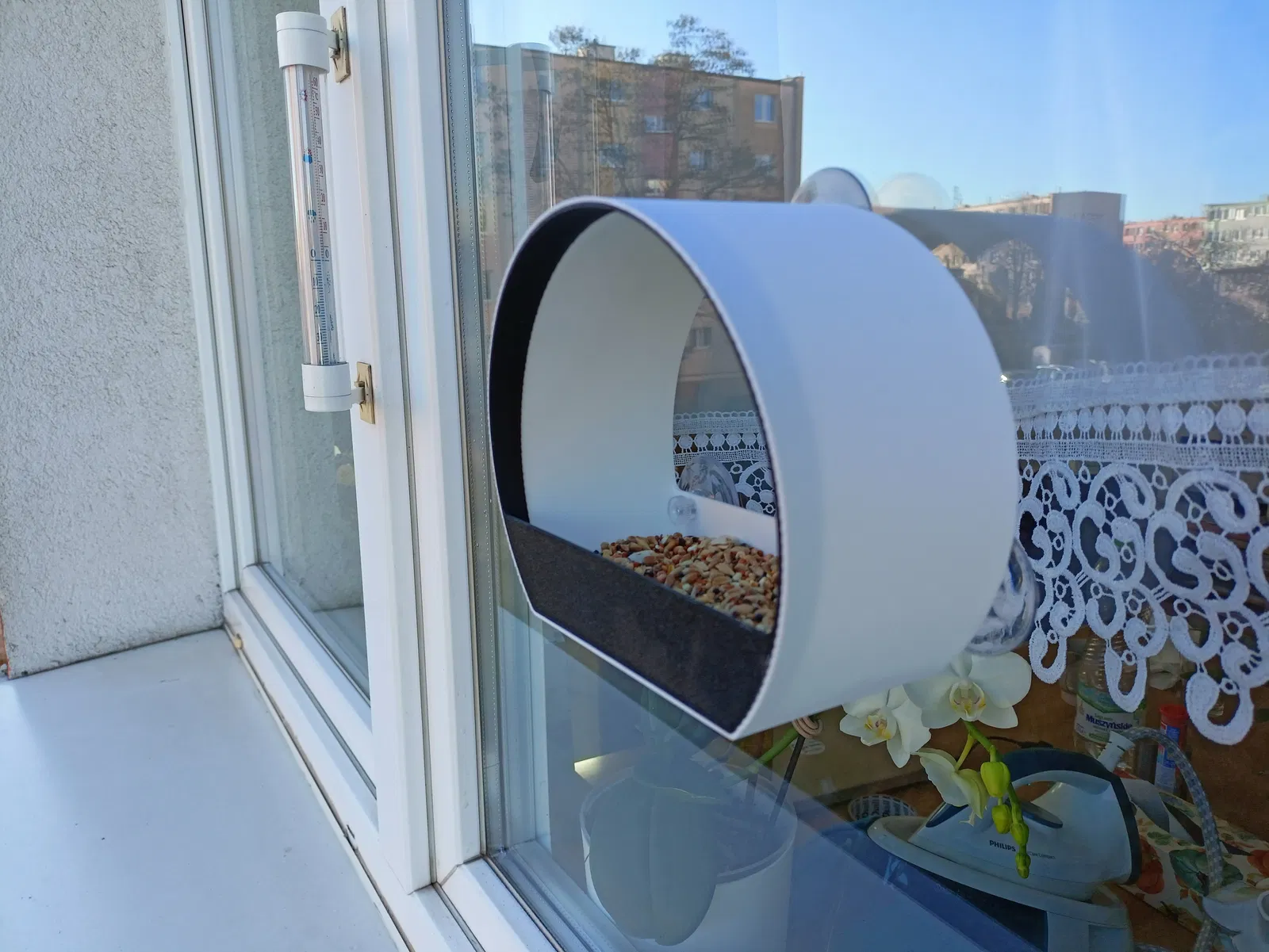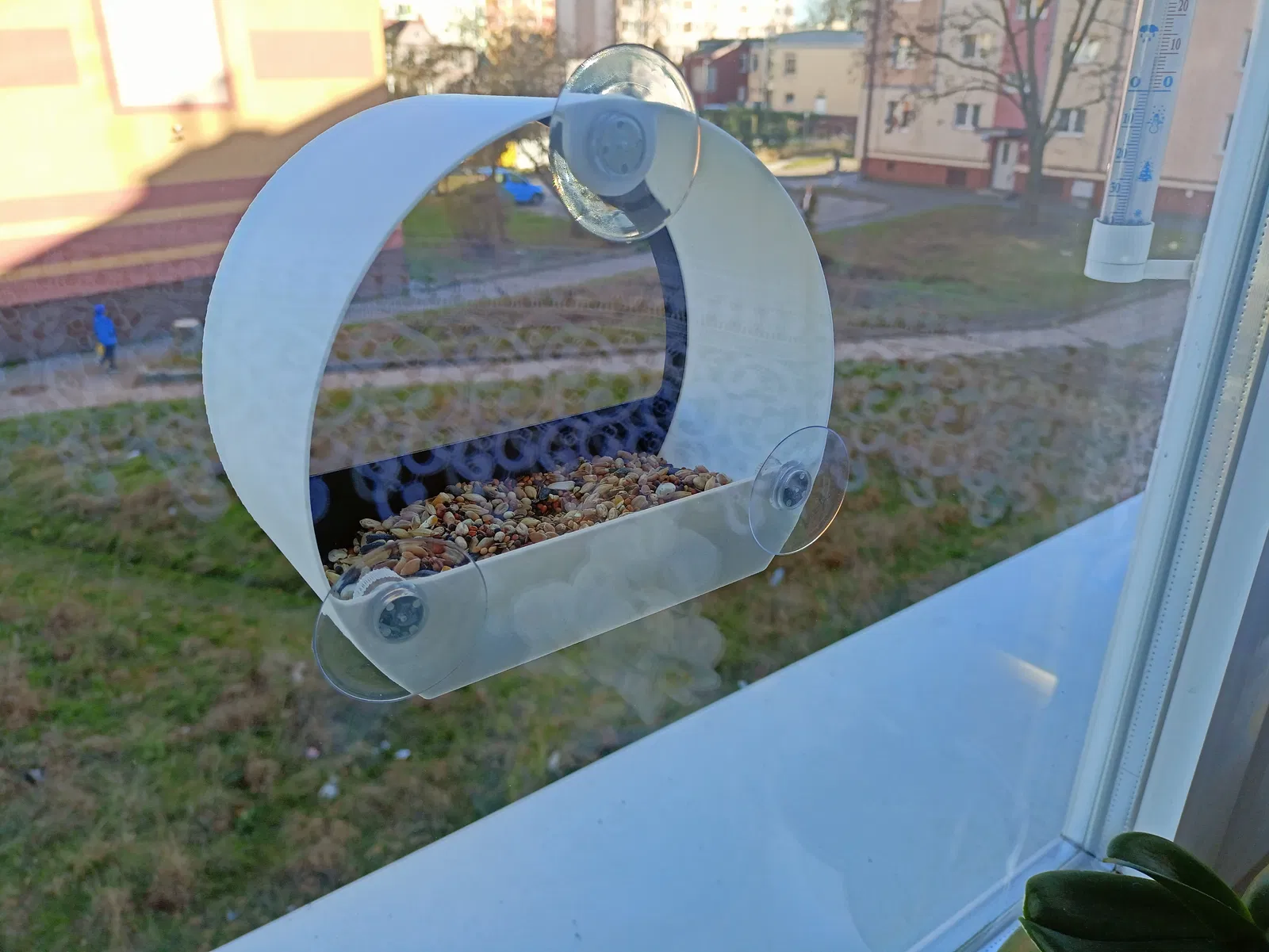 Một bộ cho ăn nhỏ xinh cho những chú chim nhỏ. Bạn có thể luôn theo dõi những chú chim từ nhà nhờ vào giá treo cửa sổ.