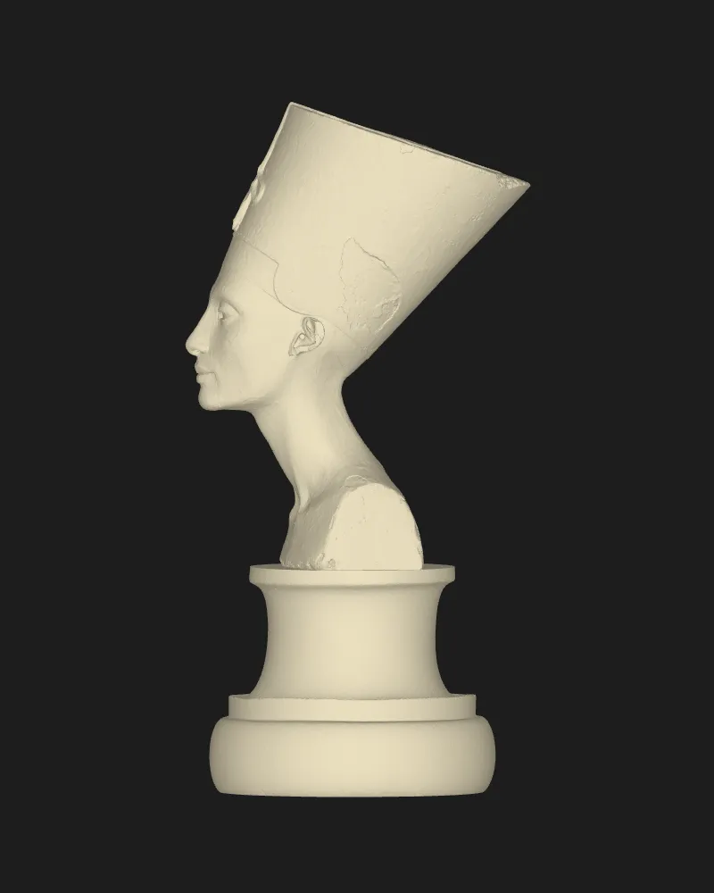 Tượng bán thân nổi tiếng của Nữ hoàng Nefertiti trên bệ đỡ, kích thước chi tiết, phù hợp cho in 3D. Chất liệu và độ khó tối ưu cho người dùng.
