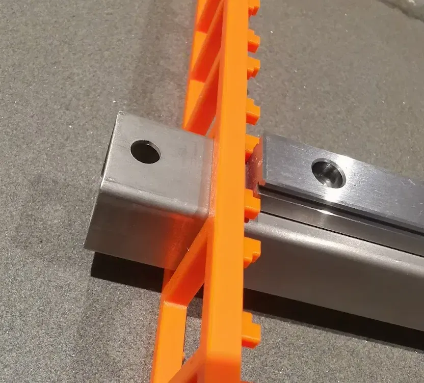 Chỉ sử dụng như một công cụ căn chỉnh, bất kỳ hồ sơ chính xác nào cũng đều được. Tôi gợi ý sử dụng PLA, 0.2 lớp, 0.4 vòi phun, 2 hoặc nhiều hơn các đường viền. Vòi phun hoặc lớp lớn hơn có thể ảnh hưởng đến độ chính xác của các núm căn chỉnh ray tuyến tính, làm cho việc lắp ghép hơi chật.