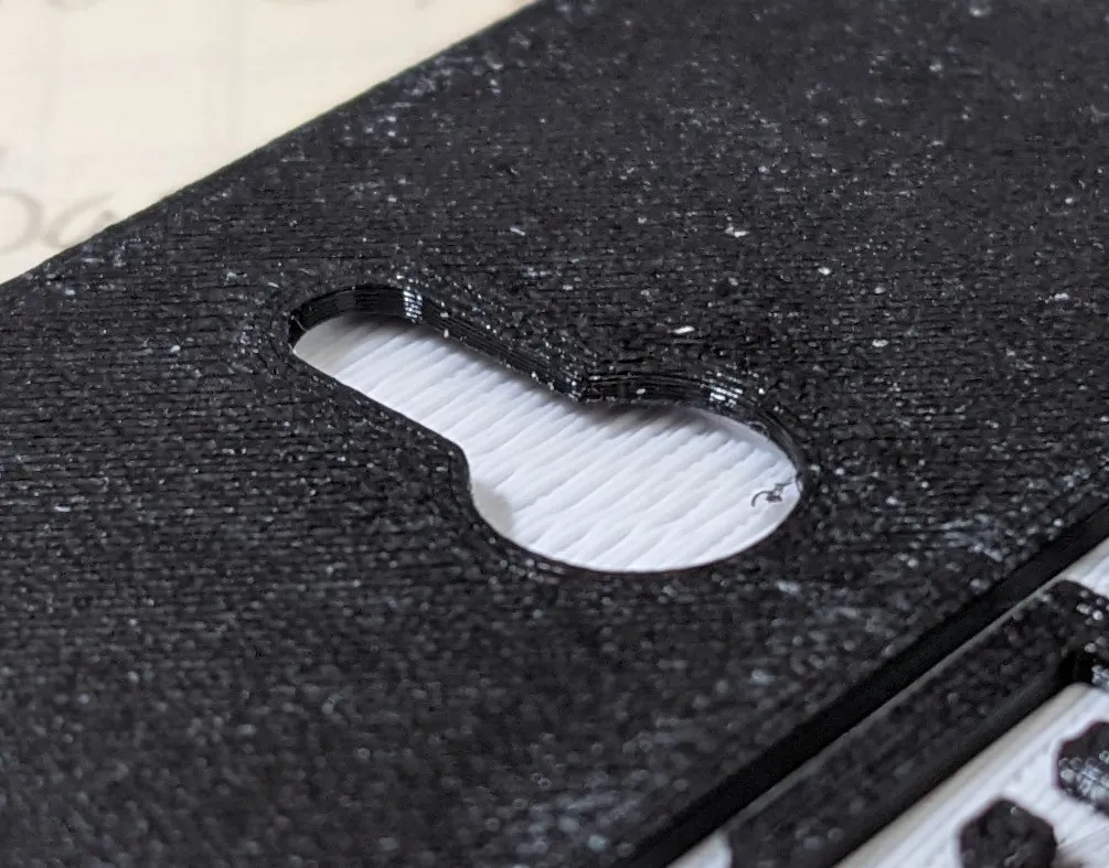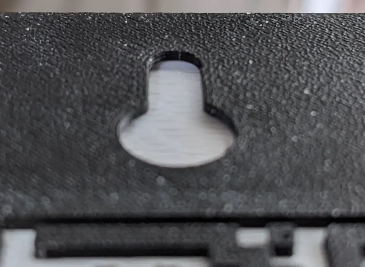 Các nhà thiết kế: hãy sử dụng đối tượng này như một Thể Tích Âm trong eSlicer để thêm một móc treo dạng lỗ khóa vào thiết kế hiện tại của bạn. Lỗ khóa có đường kính 8.8mm ở vòng tròn dưới, 4.4mm ở trên, dày 1mm với một khoảng trống 1mm phía sau cho đầu đinh. Ngoài ra, để sử dụng thể tích âm này trong OpenSCAD: