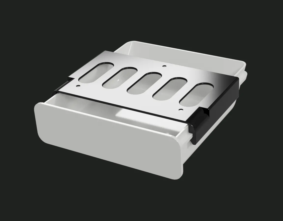 Ngăn kéo hiện đại dưới bàn đơn giản, chắc chắn và hấp dẫn. Thiết kế hai phần, in đứng không cần hỗ trợ, phù hợp với vật liệu ABS hoặc PLA+.