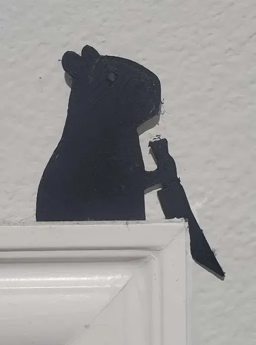 Nắp cửa hình capybara cầm dao hài hước