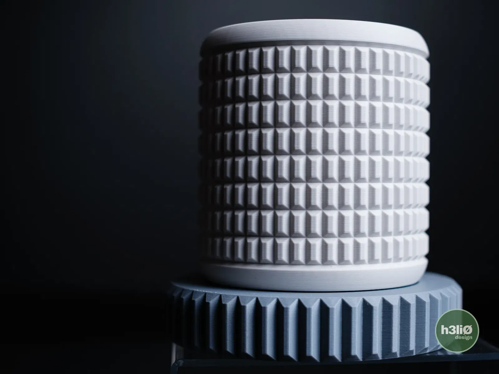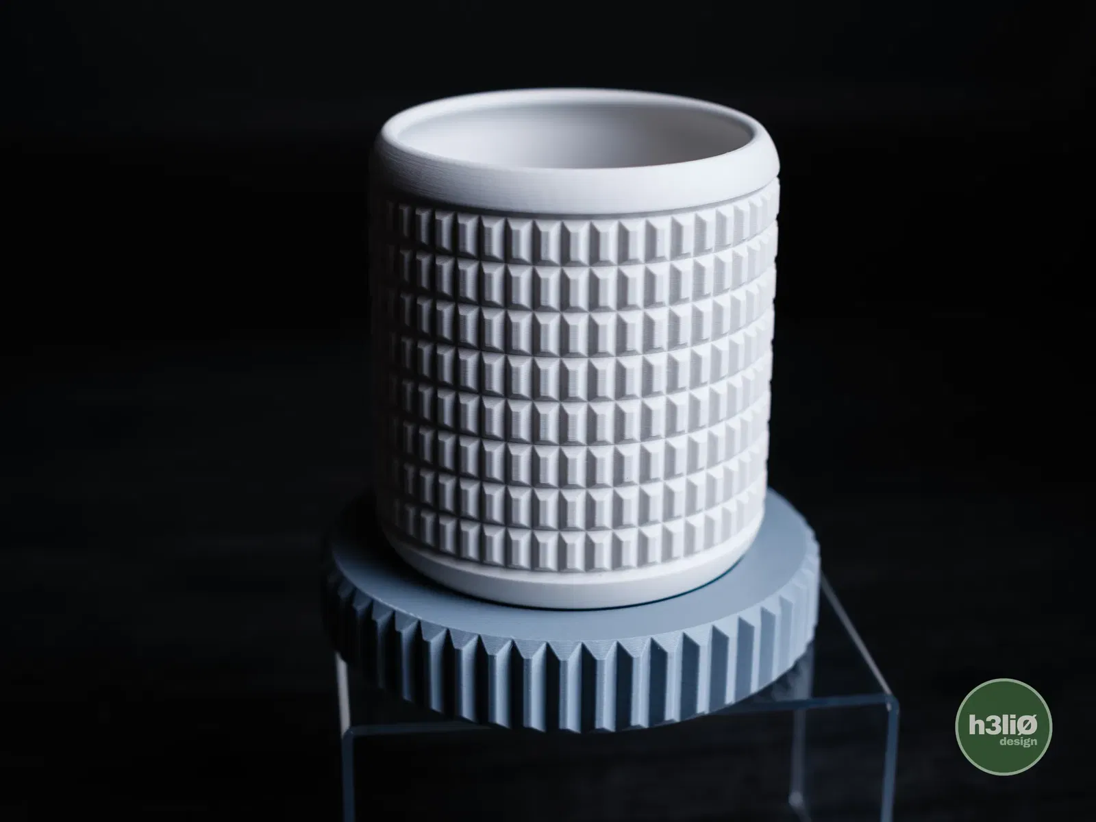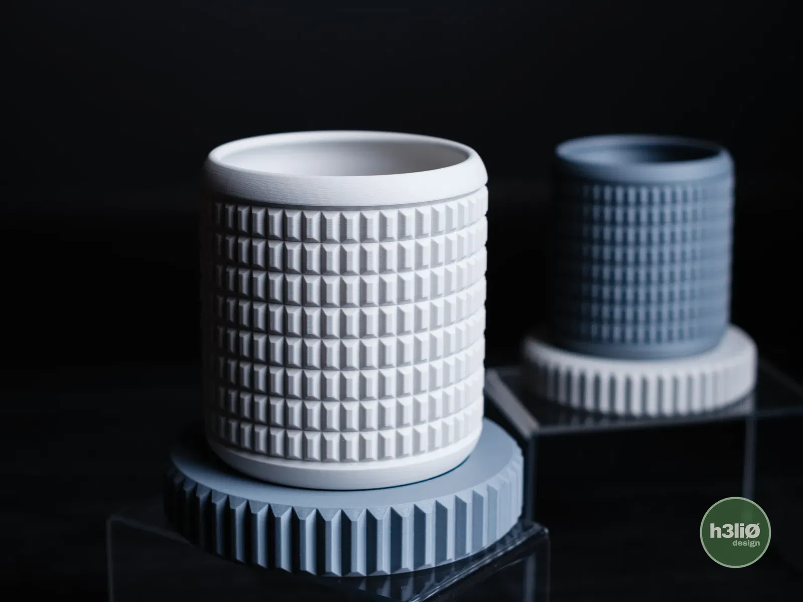 Chậu cây thiết kế hiện đại tối giản, cao trên đĩa hứng nước. Kích thước: 100mm chiều cao, phù hợp cho trang trí nội thất.