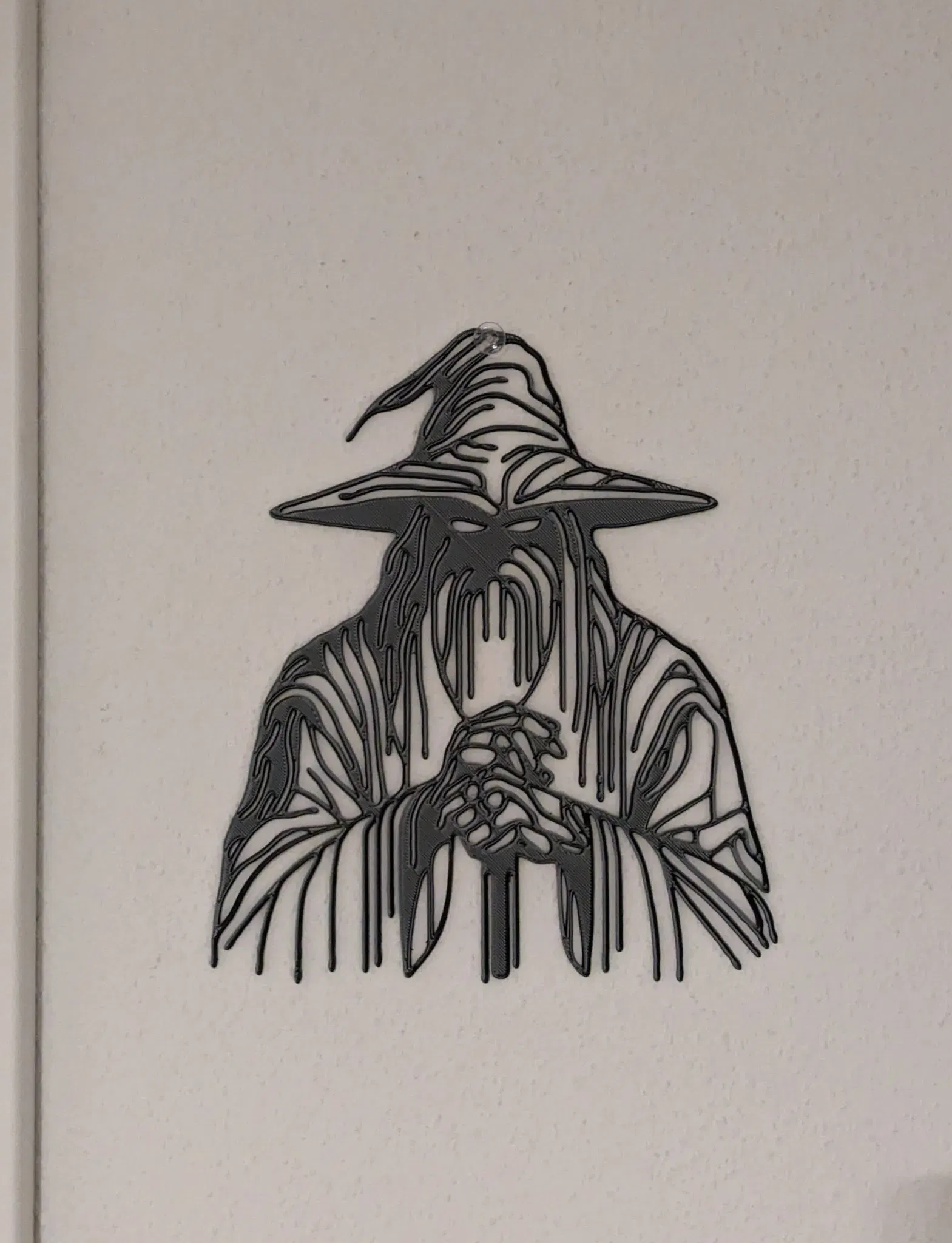 Mô hình phù thủy lỏng độc đáo, dễ in với chiều cao lớp đầu tiên 0.24mm và lớp bình thường 0.2mm. Thích hợp cho trang trí tường, mang lại không gian ma thuật.