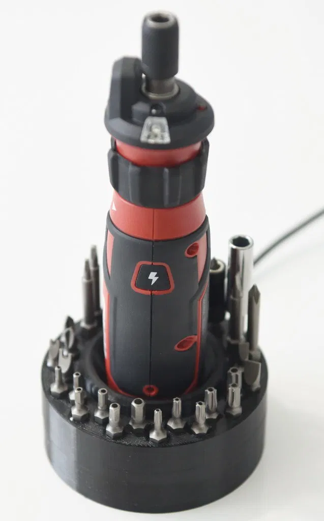 Giá đỡ sạc và bộ tổ chức mũi khoan này được tạo ra cho tua vít điện Skil SD561201. Bao gồm Đế và Nắp, với khay để chứa vật nặng tăng độ ổn định và các lỗ trên Nắp giữ mũi khoan lục giác tiêu chuẩn. Được in bằng PETG, dung sai chặt chẽ. Yêu cầu cáp USB góc lên cụ thể.