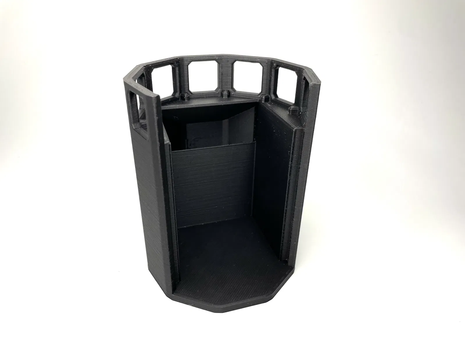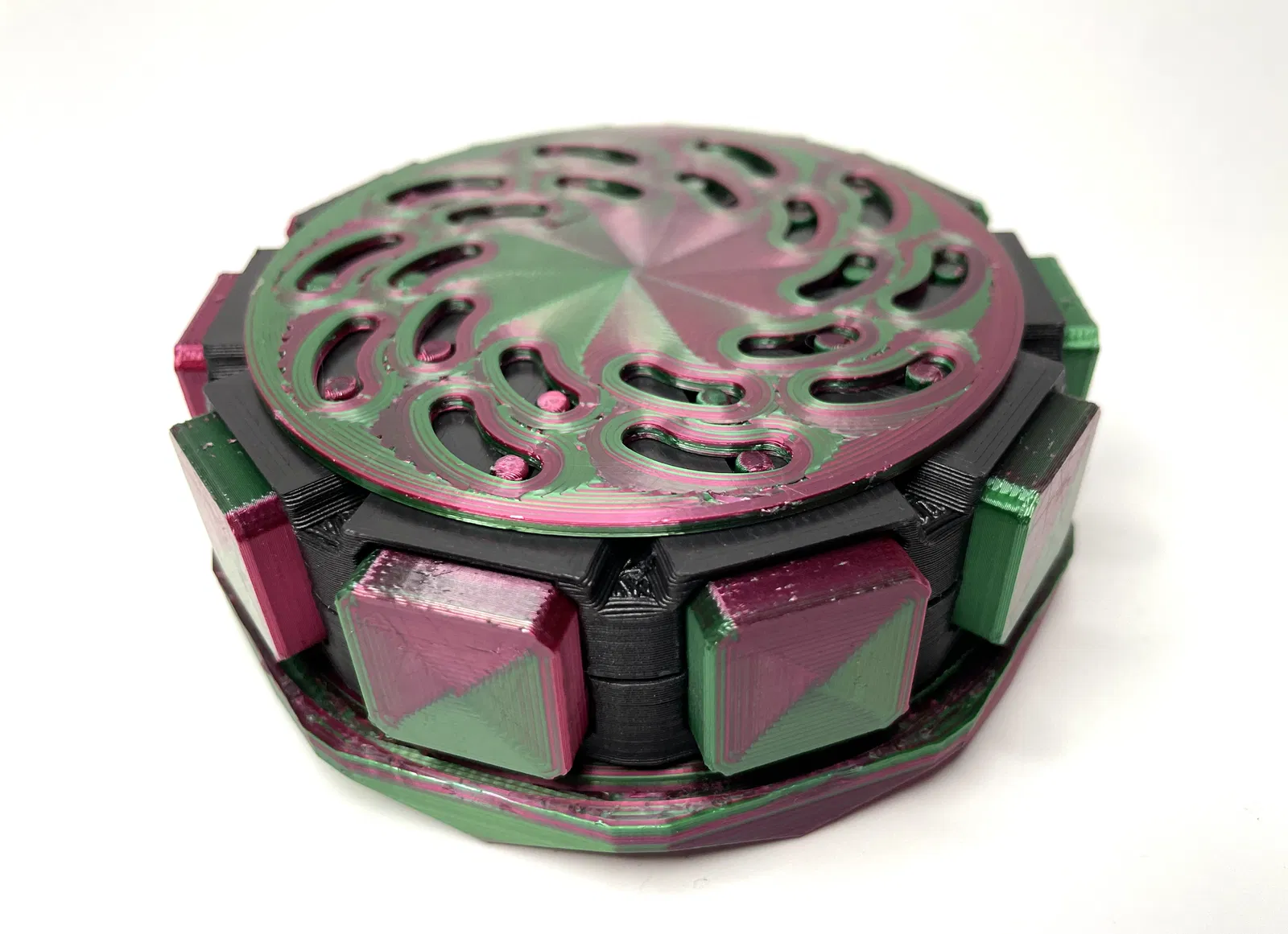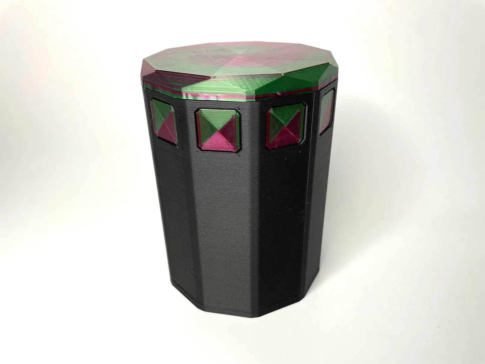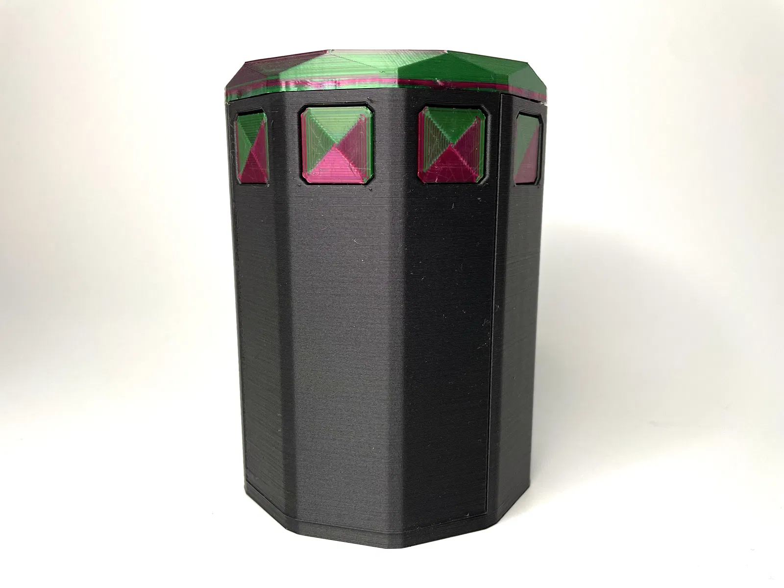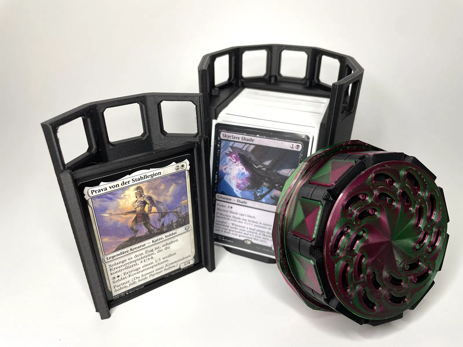 TÍNH NĂNG Ngoài cơ chế khóa mắt bắt, hộp còn có các tính năng khác làm cho nó trở nên độc đáo. Có hai ngăn chứa xúc xắc nhỏ hoặc token. Và cửa cũng có thể hoạt động như vùng chỉ huy. Chỉ cần trượt quân bài chỉ huy của bạn vào từ phía dưới là xong. Phiên bản cập nhật này của hộp giờ đây có thể chứa thoải mái tới 100 lá bài Magic The Gathering, Pokemon hoặc các thẻ bài giao dịch khác được bọc bài. Nếu bạn muốn sử dụng thẻ bài bọc đôi, tôi khuyên bạn nên in Hộp Bài v4, vì nó có ngăn chứa lớn hơn. ### IN ẤN ##### Vật liệu Tôi đã sử dụng magicPLA và ecoPLA Refill của 3DJake. ##### Hỗ trợ Chỉ có các Bu lông cần hỗ trợ. Mặc dù việc in các file Cửa và Thân Hộp đòi hỏi một số kỹ năng in cầu nối. Nếu bạn in ở nhiệt độ rất cao hoặc bằng vật liệu kém phù hợp cho in cầu nối như PETG, bạn có thể muốn hỗ trợ các bộ phận này. ##### Định hướng Tôi khuyên bạn nên in tất cả các file theo định hướng chúng được tải lên. ### LẮP RÁP 1. Lấy Phần Giữa 1 và lắp 10 Bu lông vào.