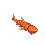Tôi đã điều chỉnh thiết kế của McGybeer và thêm các vòng để biến cá mập con thành những hạt mũ. Tôi cũng đã gắn đuôi vào đoạn thân cuối cùng và làm cho nó in theo chiều dọc vì ở tỷ lệ một nửa, tôi không thể làm cho khớp bóng của đuôi hoạt động. Các vây bên cũng chủ yếu là tĩnh không phải do kết nối vòng. Tất cả các khớp khác đều hoạt động, bao gồm cả miệng, điều này khiến tôi hơi ngạc nhiên.