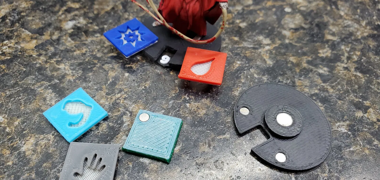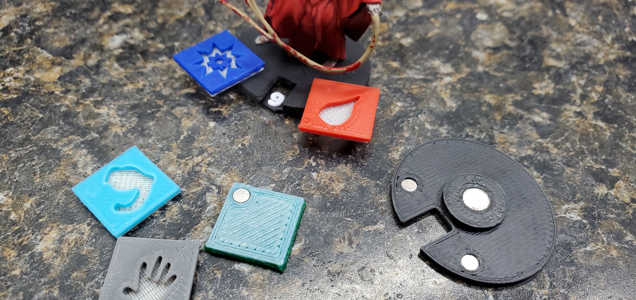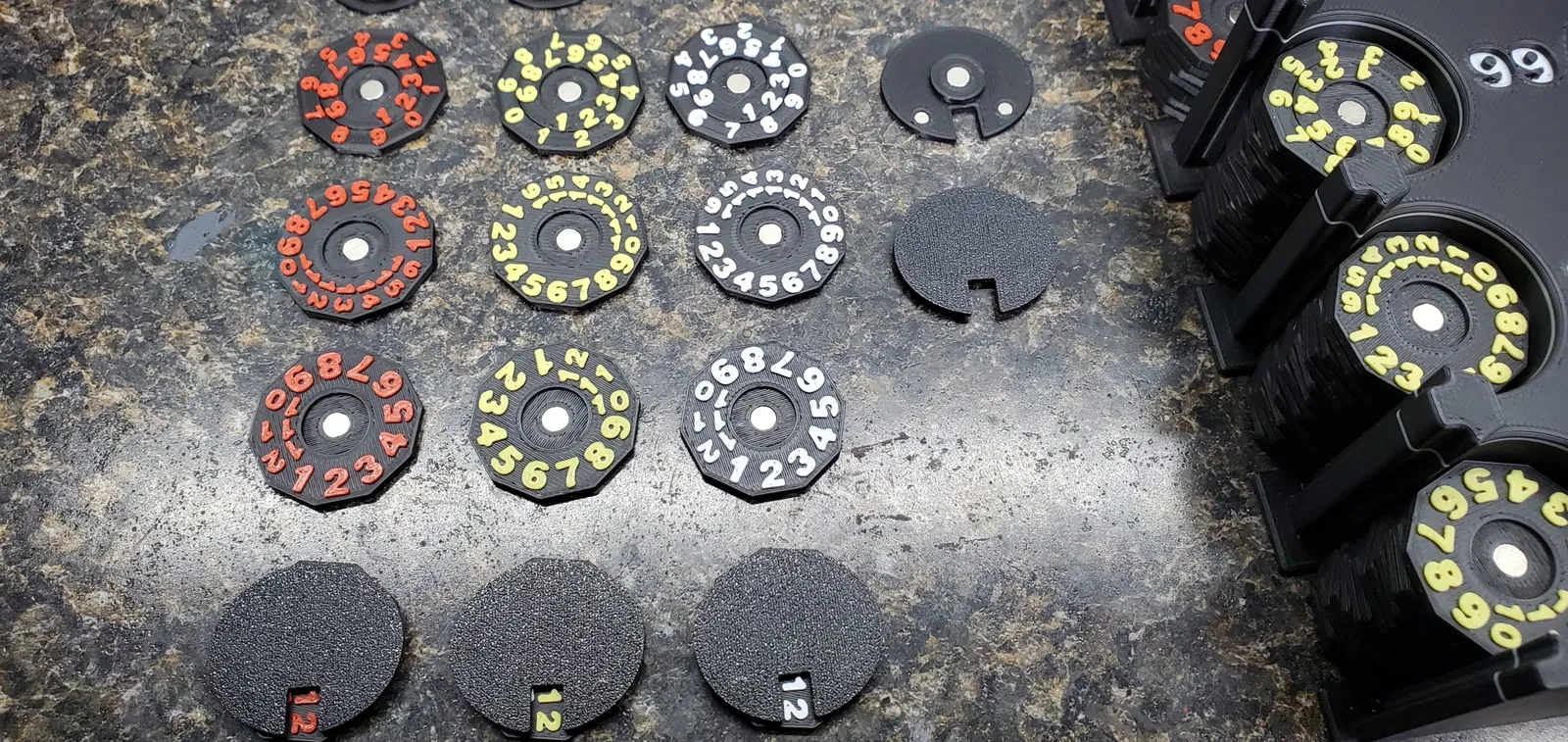 Hóa ra thiết kế tôi nghĩ ra hoàn toàn có thể lắp ráp theo mô-đun. Số lượng máu có thể lên tới 99 và có thể hoán đổi với bất kỳ sự kết hợp nào của số/biểu tượng hoặc màu sắc. Hệ thống nam châm giúp việc lắp ráp trở nên đơn giản và nhanh chóng, đồng thời cũng giúp việc lưu trữ trở nên dễ dàng, và giữ cho mô hình của bạn được cố định an toàn khi cất giữ. Bộ theo dõi và Đế mô hình sau khi lắp ráp chỉ dày 4,6mm! Bao gồm cả đế mô hình! Có chỗ cho hai chỉ báo trạng thái trên mỗi mô hình được gắn vào đế dễ dàng bằng nam châm nhúng.