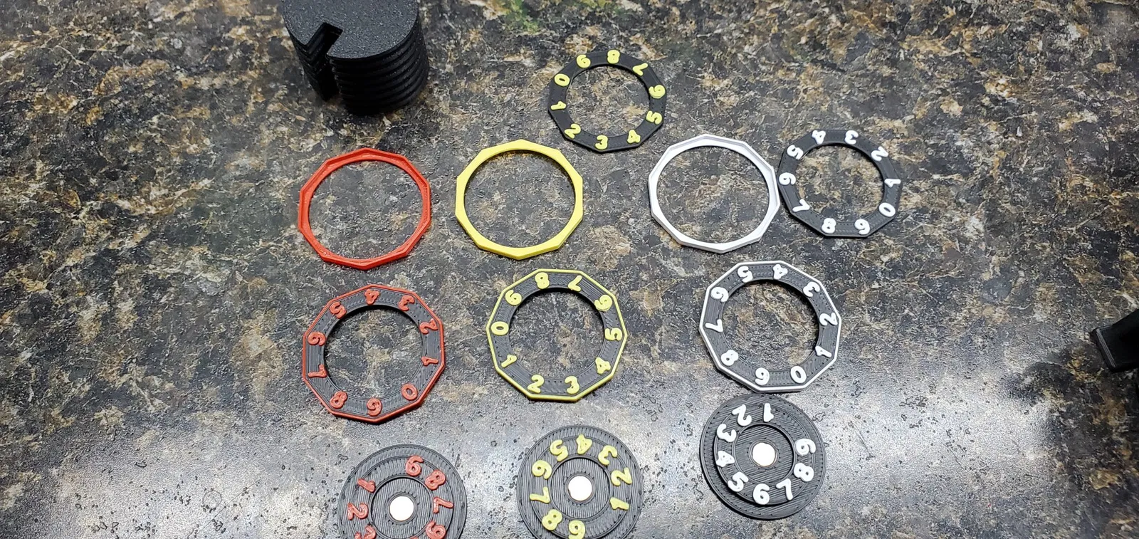 Tôi đã dành nhiều thời gian để điều chỉnh kích thước và cài đặt in phù hợp với máy in của mình, vì vậy tôi đã bao gồm tất cả các tệp tôi đã sử dụng để in bộ vòng số của mình. Các tệp gcode tôi đã bao gồm có các điểm dừng thay đổi màu sắc trong các vòng số. Không sử dụng keo, mọi thứ đều được ép chặt, nhưng bạn có thể phải điều chỉnh một chút cho máy in của mình.