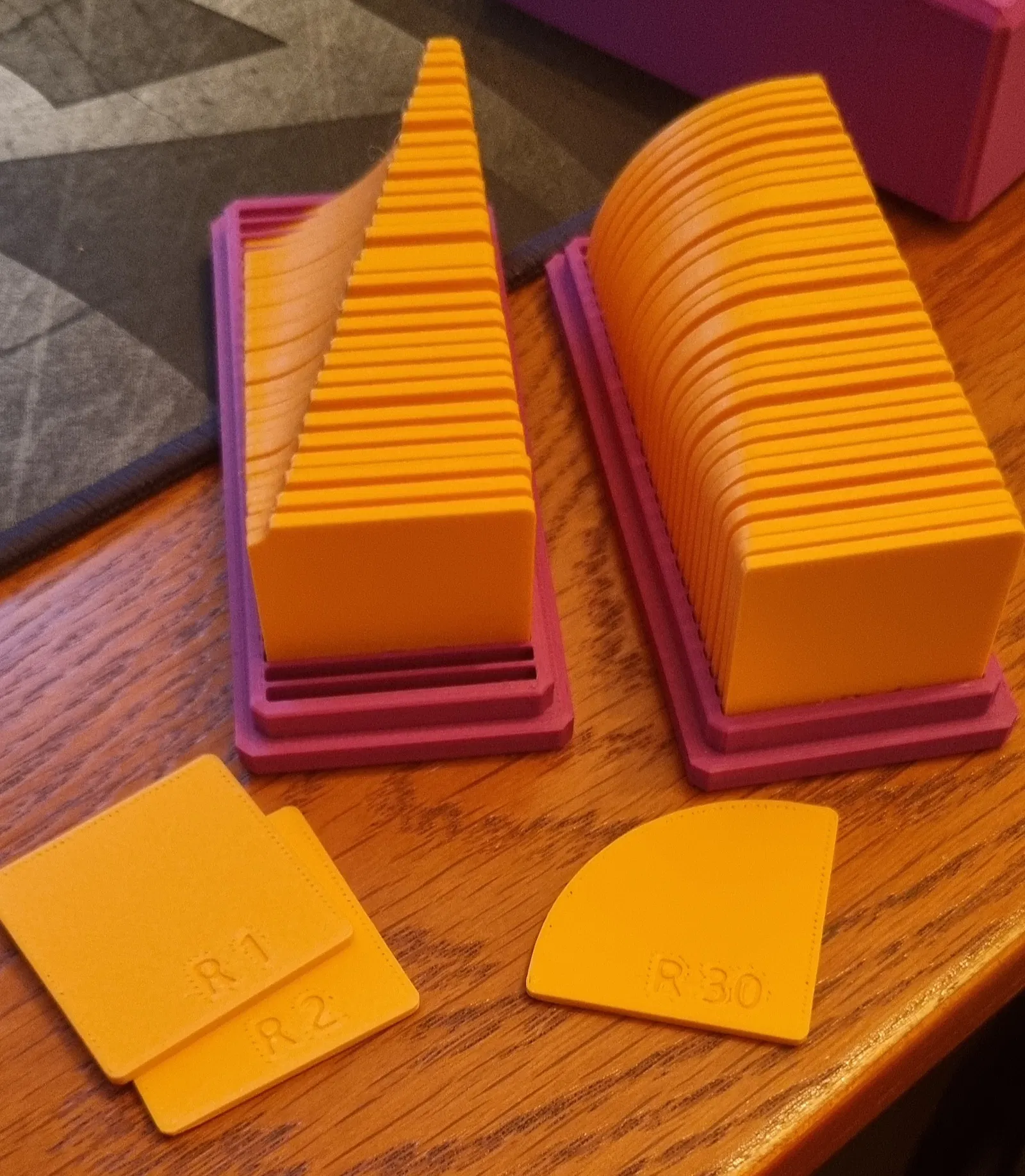 Bản chỉnh sửa thước đo bán kính 1-30mm với tất cả thông tin được làm chìm xuống để dễ đọc hơn. Tệp đã được cập nhật vào tháng 5-2024 với các mô hình nằm phẳng trên khay in. Các vật chứa trong ảnh không đi kèm với tệp này.