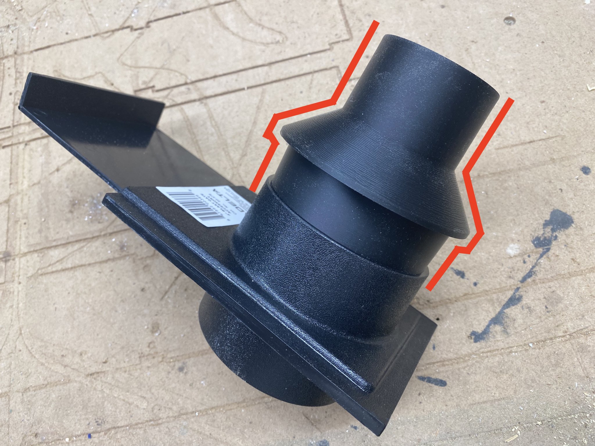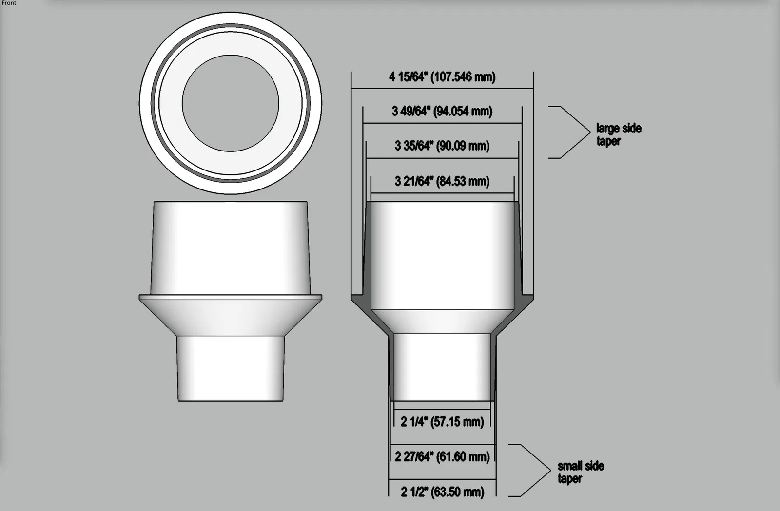 Bộ chuyển đổi hình nón này nối cổng hút bụi 4 inch với ống 2.5 inch, được thiết kế để gắn khít bên trong cửa gió bụi hoặc chụp hút bụi có đường kính ngoài 4 inch. Tương tự như POWERTEC 70291, nó phù hợp cho các xưởng mộc cần giải pháp thu gom bụi hiệu quả. Hãy đo đạc cẩn thận trước khi in.