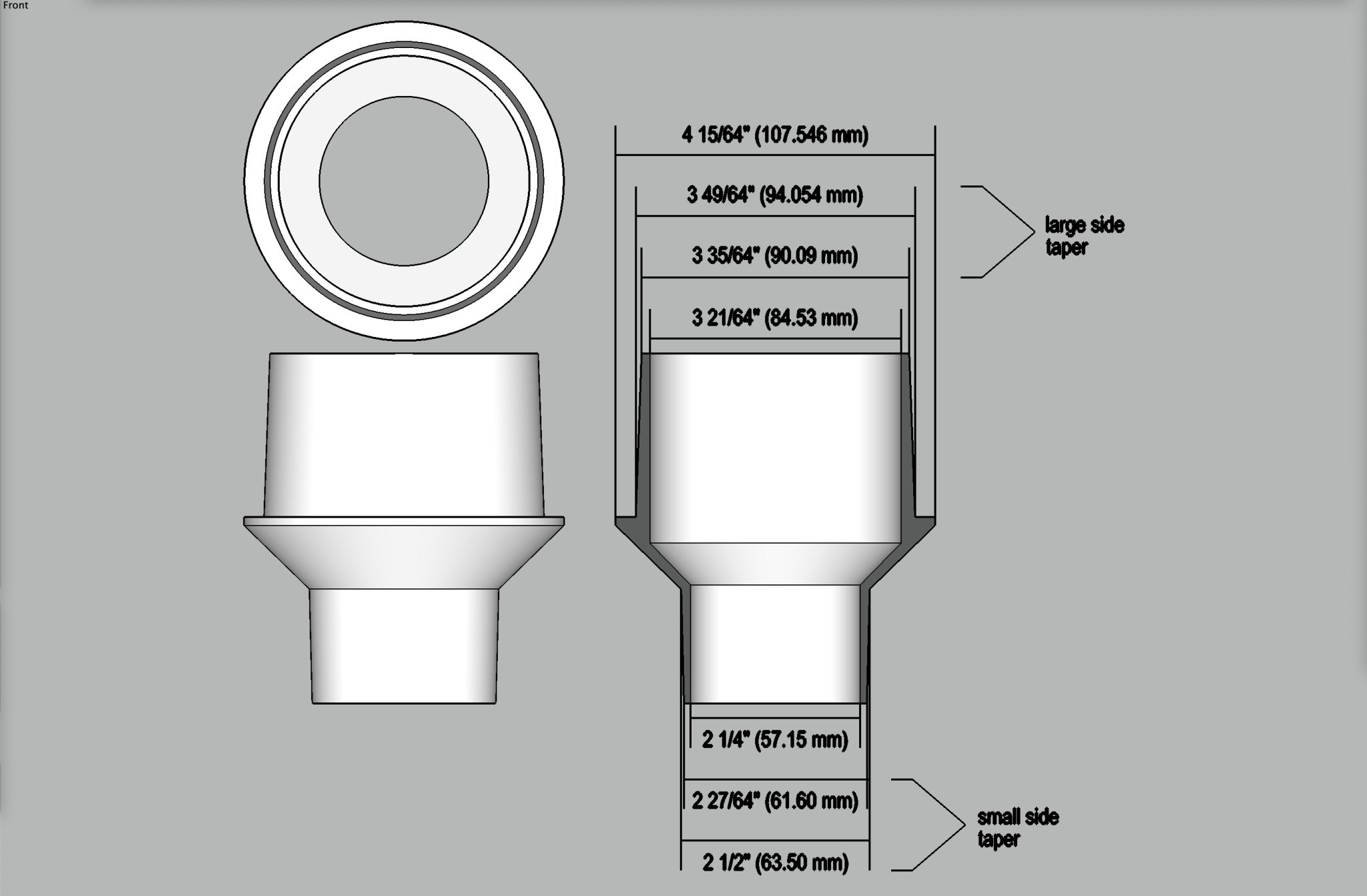 XIN LƯU Ý rằng cái này không được làm để kẹp ống 4 inch vào mặt lớn của nó. Nó quá nhỏ cho việc đó. Bộ Chuyển Đổi Cổng Hút Bụi 4 inch Sang Ống 2.5 inch Hình Nón