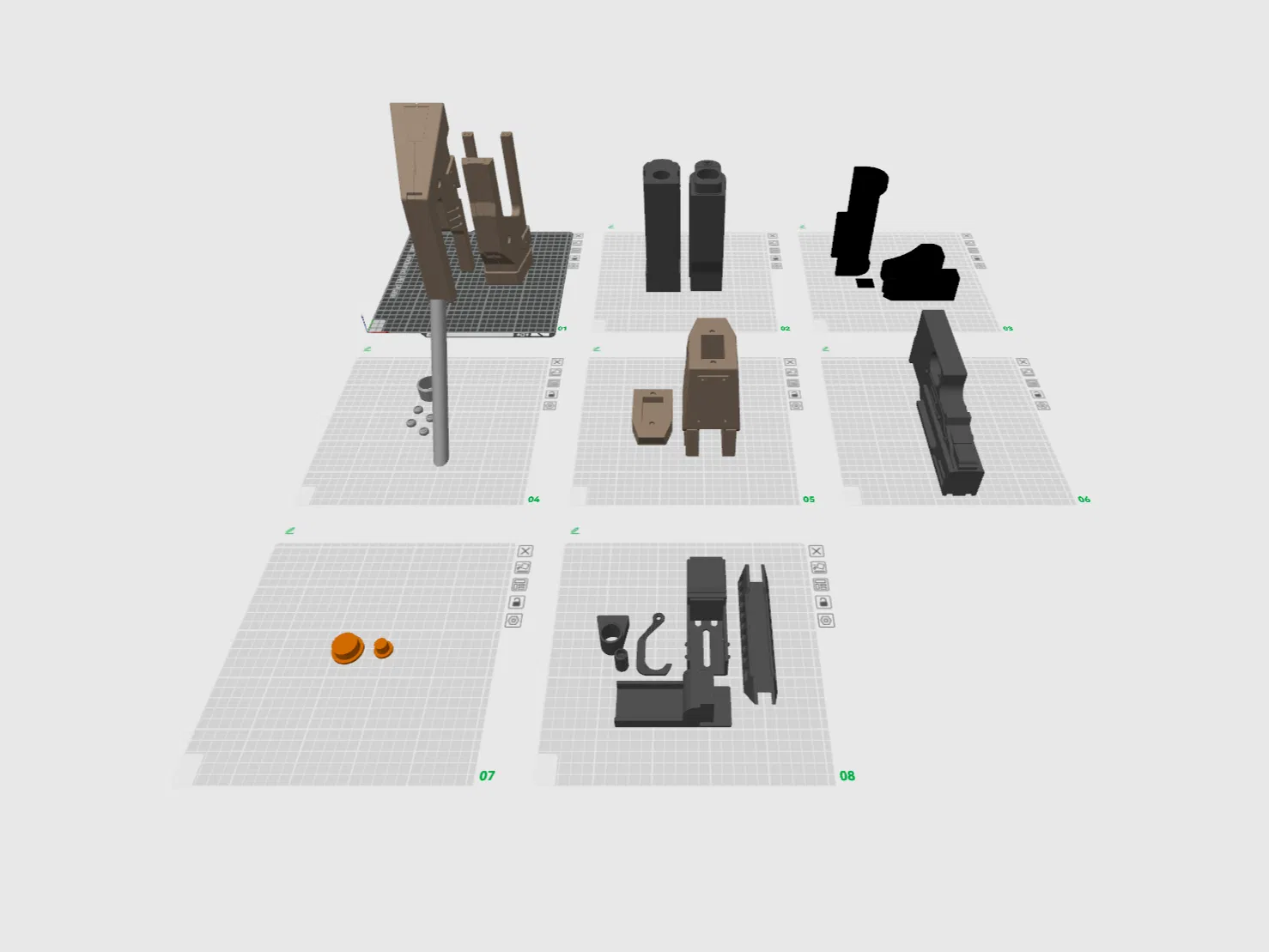 Tui đã chia các bộ phận theo màu cho mấy bạn muốn in bằng sợi nhựa có màu giống tui nè.