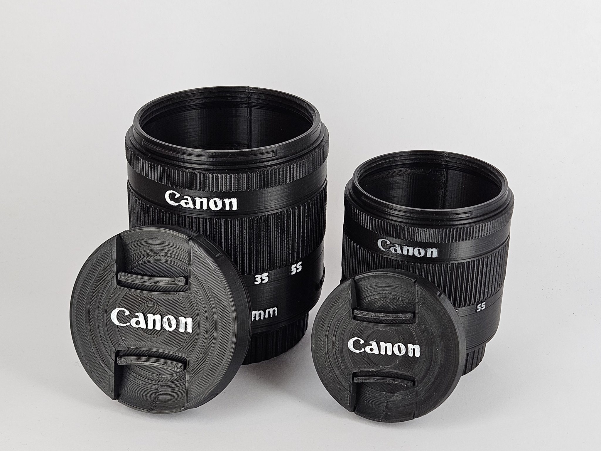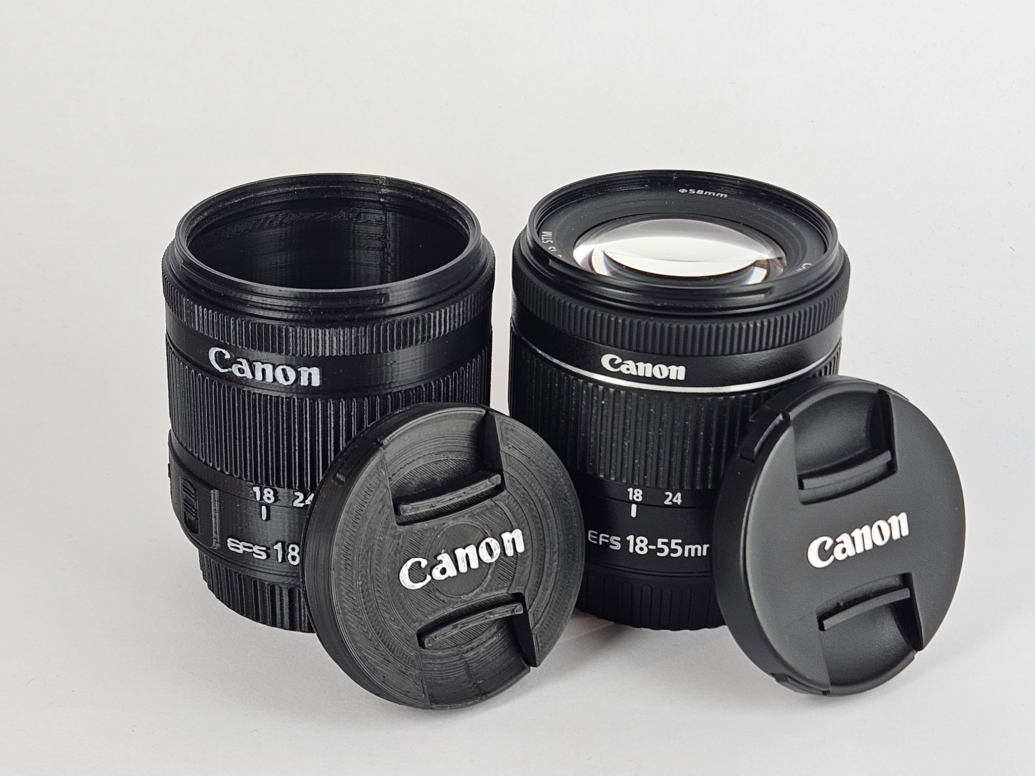 Đây là một hộp chứa được làm để trở thành bản sao 1:1 của ống kính canon EF-S 18-55mm.