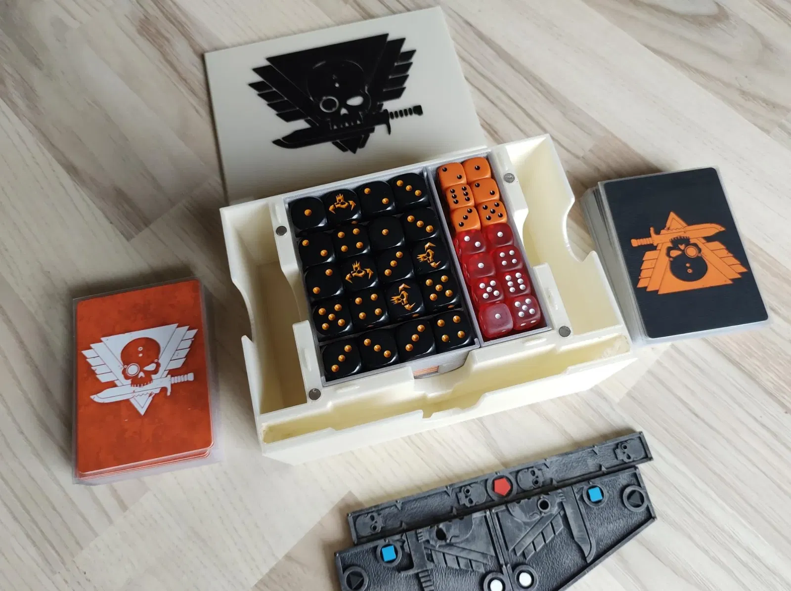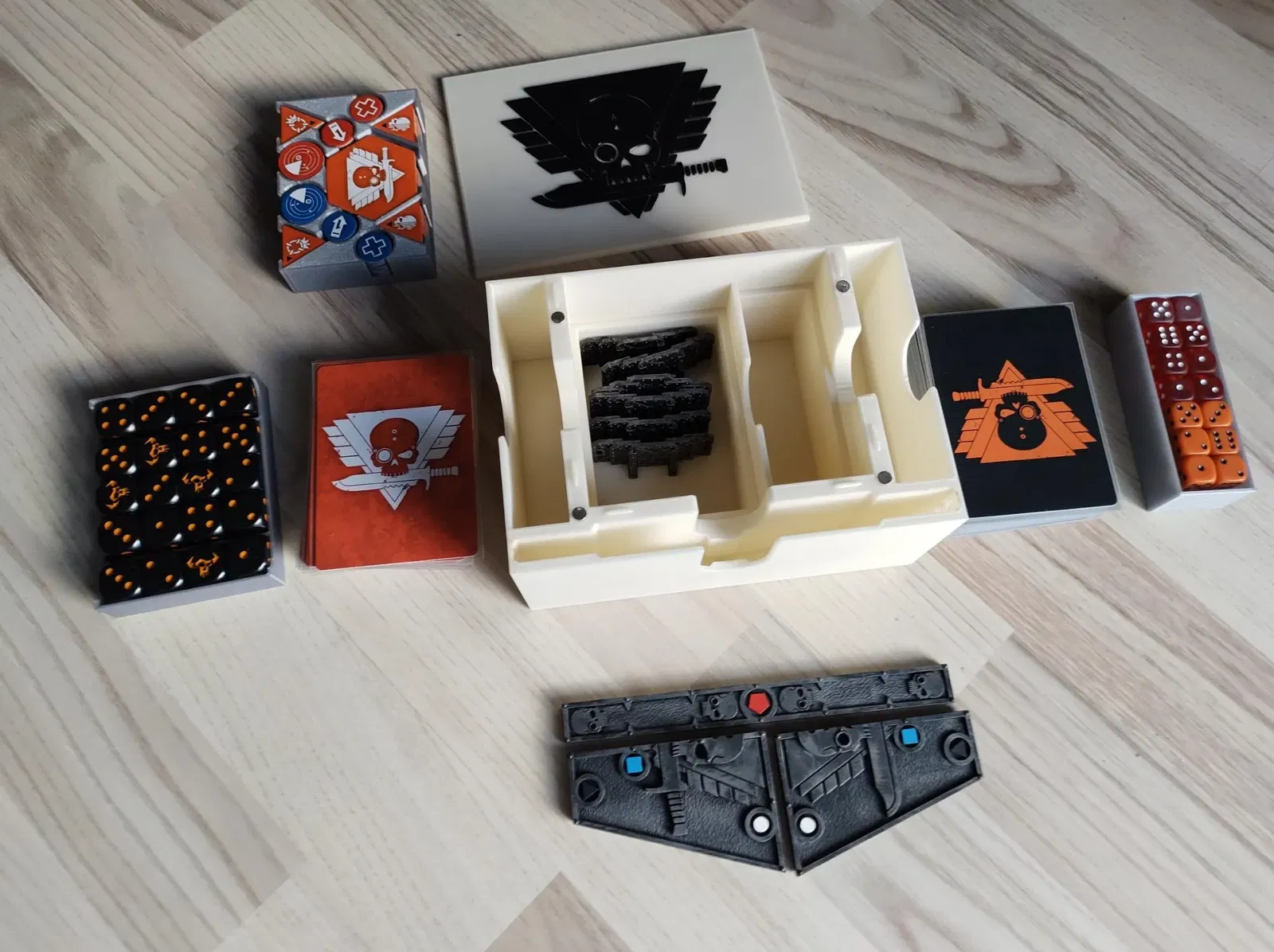 Bộ tổ chức/Hộp cho tất cả các thứ cần thiết để chơi: Token, thẻ TacOp, rào chắn, thước, xúc xắc, ...