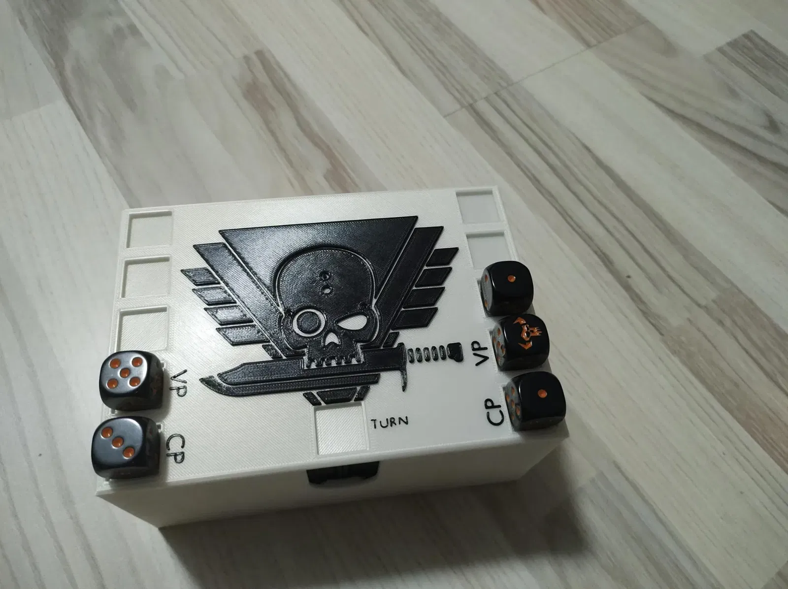 Tôi đã thêm hai nắp nữa có thể được sử dụng như một bộ theo dõi cho lượt hiện tại, điểm chỉ huy và điểm chiến thắng. Chọn một trong ba nắp. Nắp có bộ theo dõi ở dưới cùng phải có giá đỡ cho việc in.