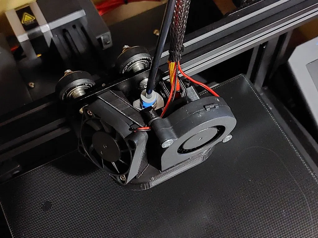Cánh quạt tản nhiệt "Ugly-but-Light" cho Ender 3 V2. Nhẹ chỉ 35g, gọn gàng, chỉ rộng hơn bộ tản nhiệt gốc vài milimet. Tương thích với quạt 4010/4020 cho hotend và 5015 cho làm mát bộ phận. Cần một vài bộ phận hỗ trợ. Phù hợp với Ender 3 v2 và các máy clone.