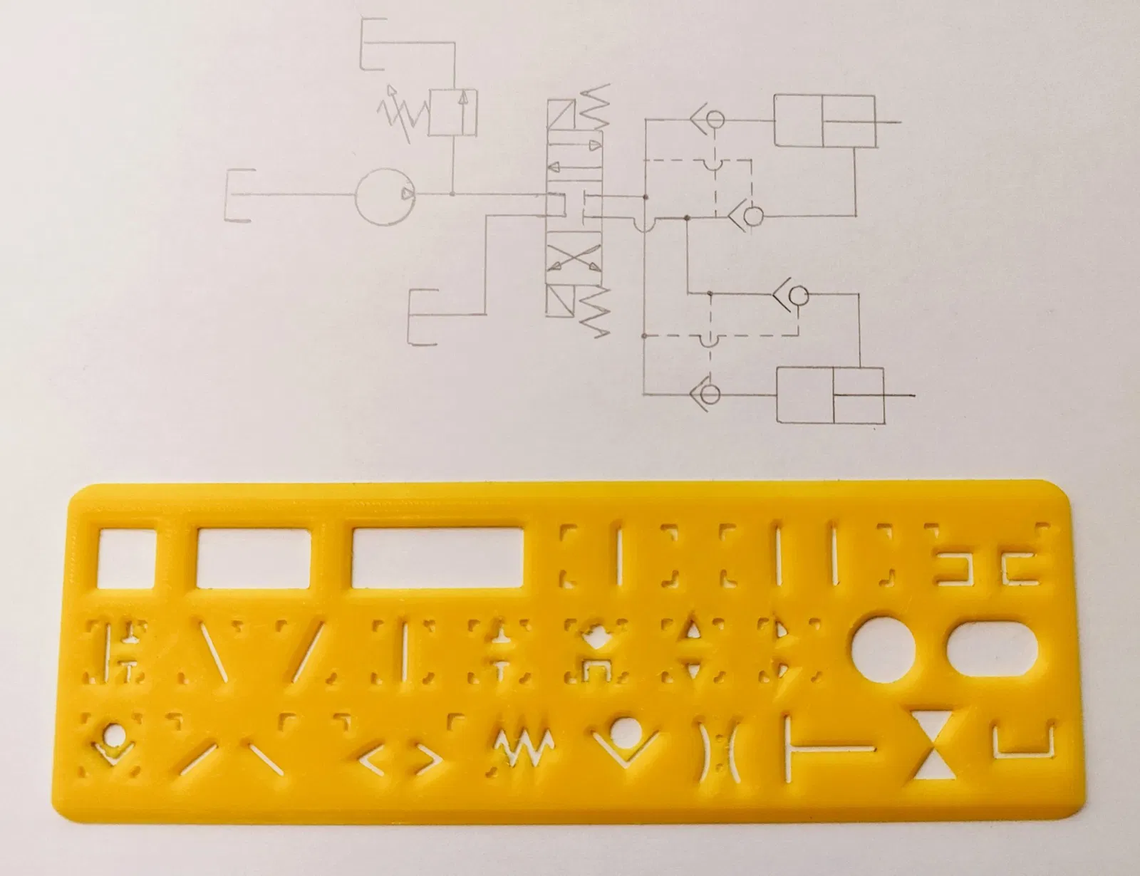 Mẫu để vẽ các sơ đồ thủy lực đơn giản bằng bút chì. Cũng có thể được sử dụng như một thước.