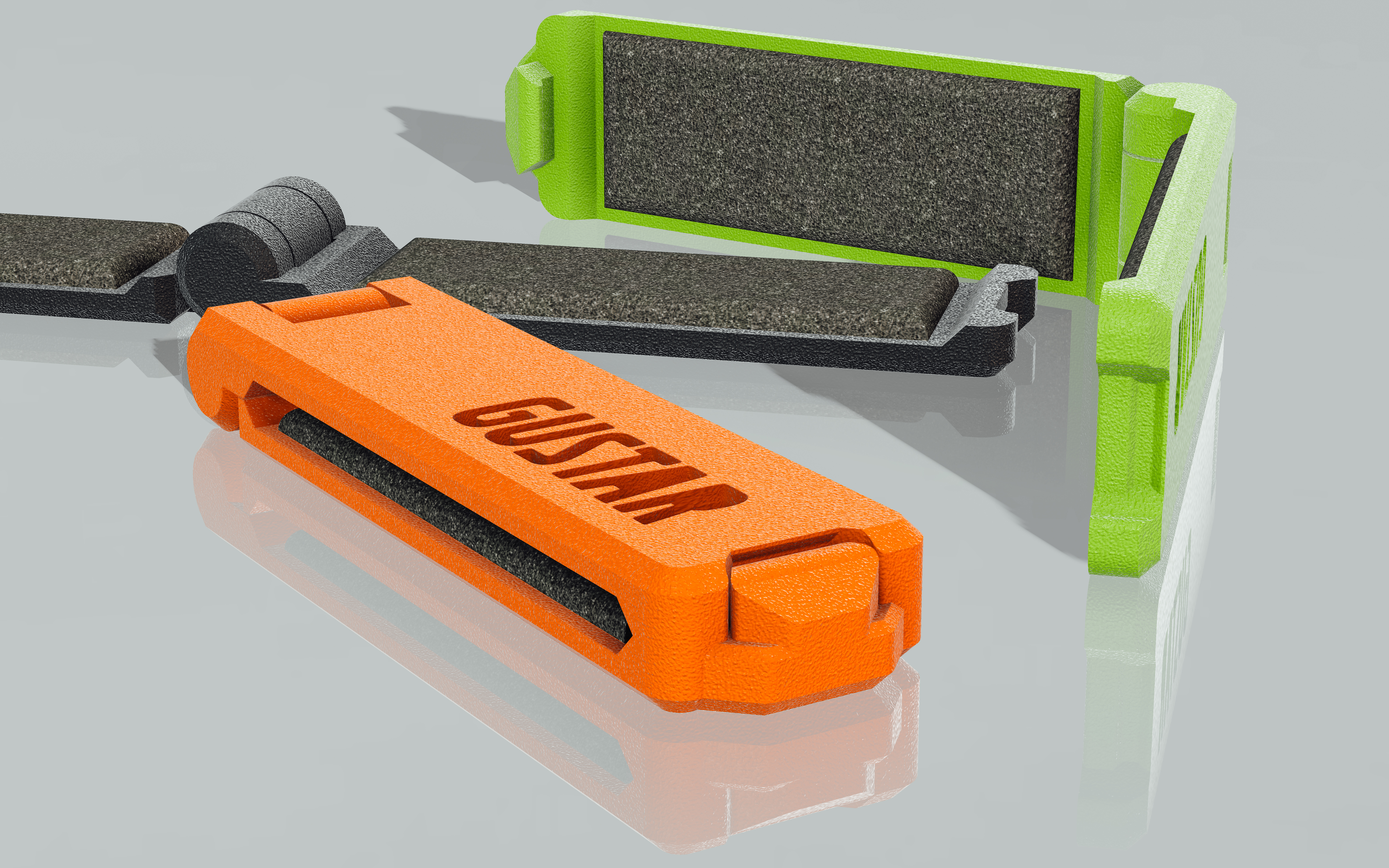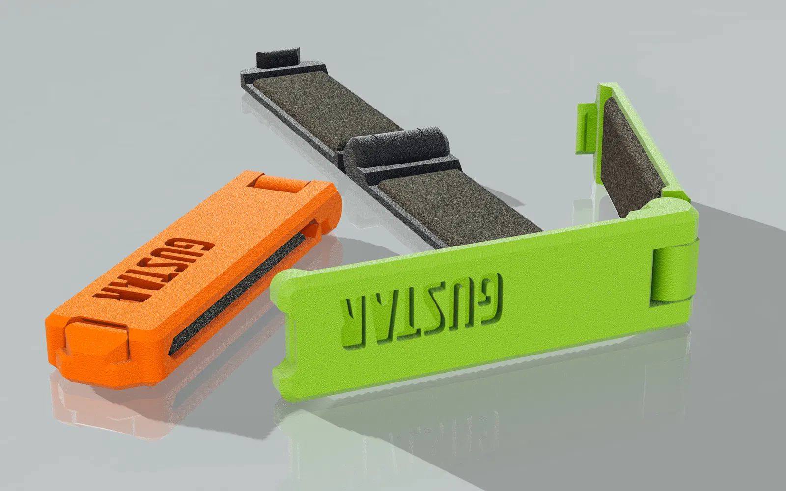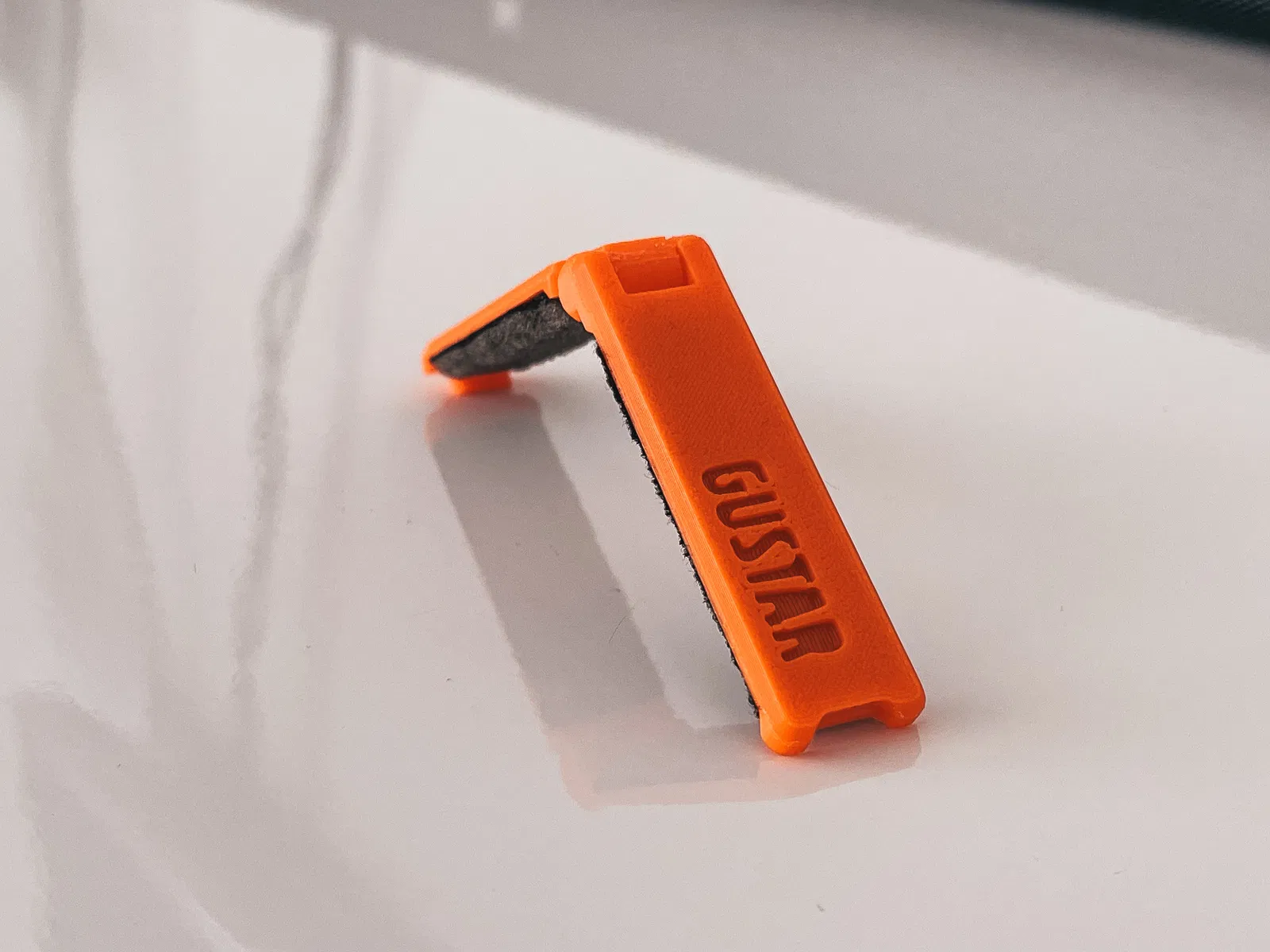 Phiên bản bộ giảm chấn dây đàn guitar tối giản, bóng bẩy. Được thiết kế cho guitar điện 6 dây với thương hiệu Gustar độc đáo. Hướng dẫn in 3D chi tiết với cài đặt lớp 0.1mm, 50% infill và dung sai 0.25mm. Bao gồm cách xử lý bản lề và đề xuất vật liệu đệm xốp 1.5mm.