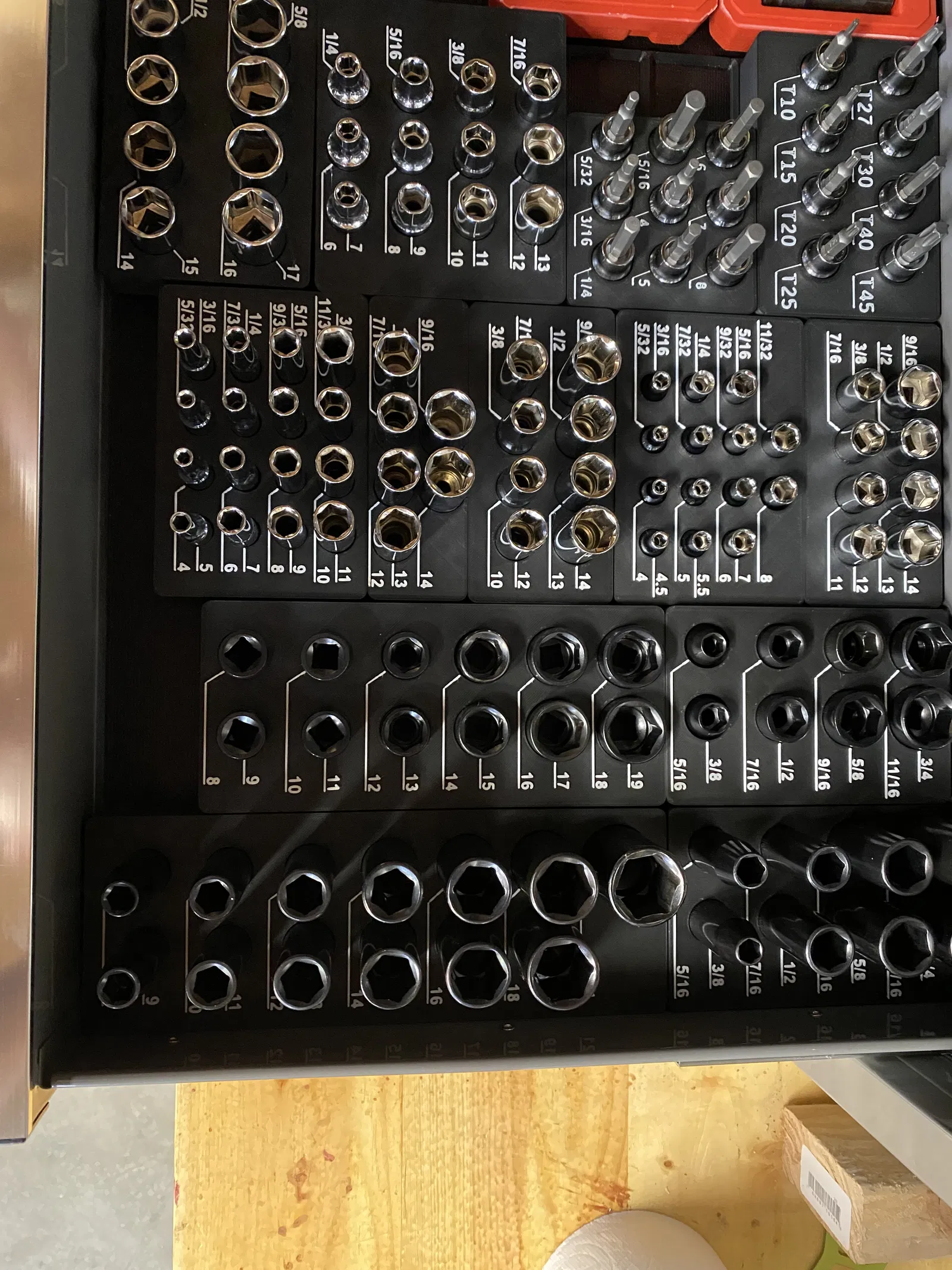 Đây là một cách gọn gàng để sắp xếp và dán nhãn tất cả các ổ cắm và trình điều khiển của bạn. Nó đòi hỏi một chút công sức vì bạn sẽ phải đo và nhập đường kính cũng như nhãn. In bằng 2 màu, hoặc in bằng màu sáng và dùng bút dạ hoặc tương tự để làm tối các nhãn nổi.