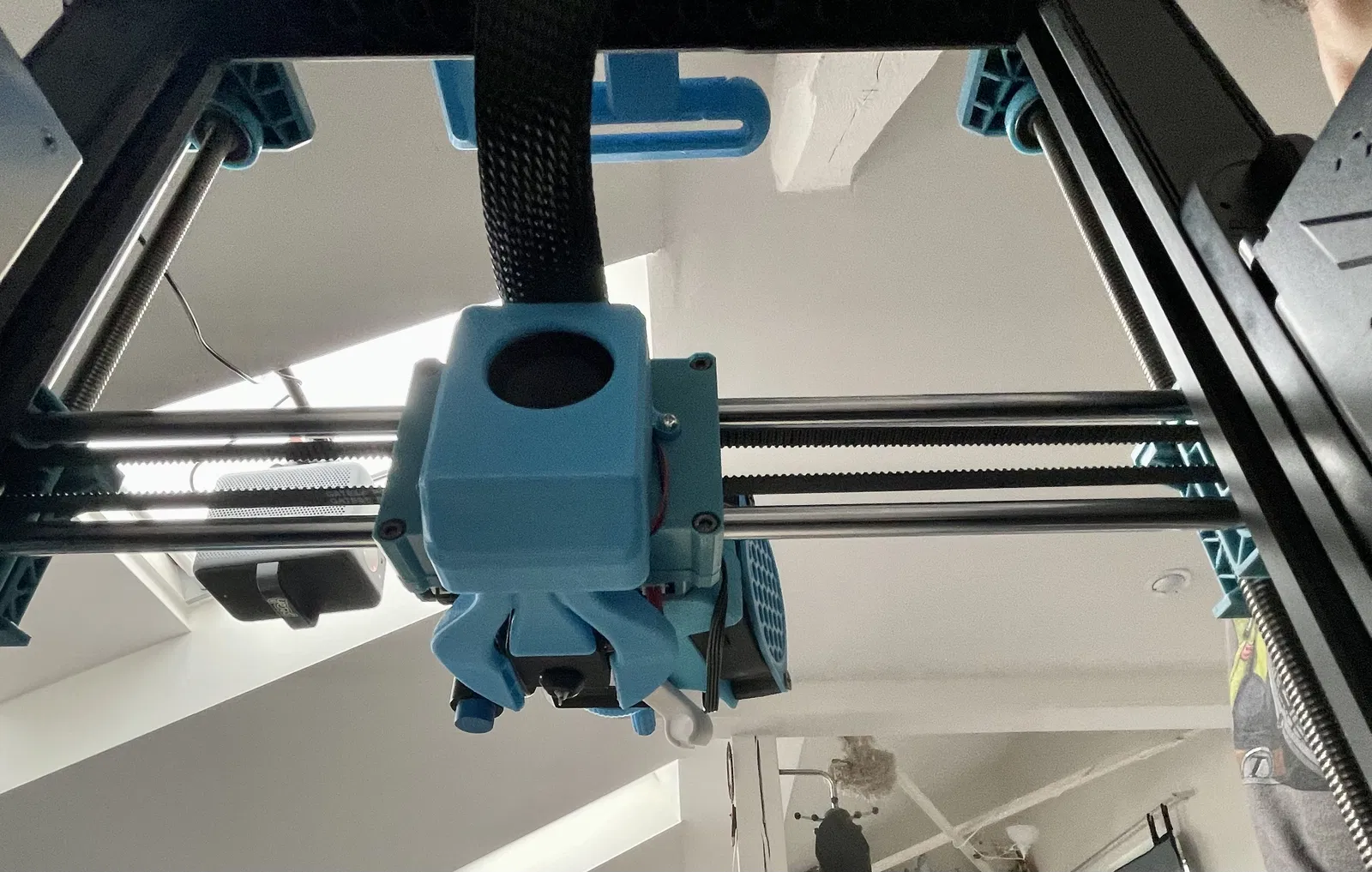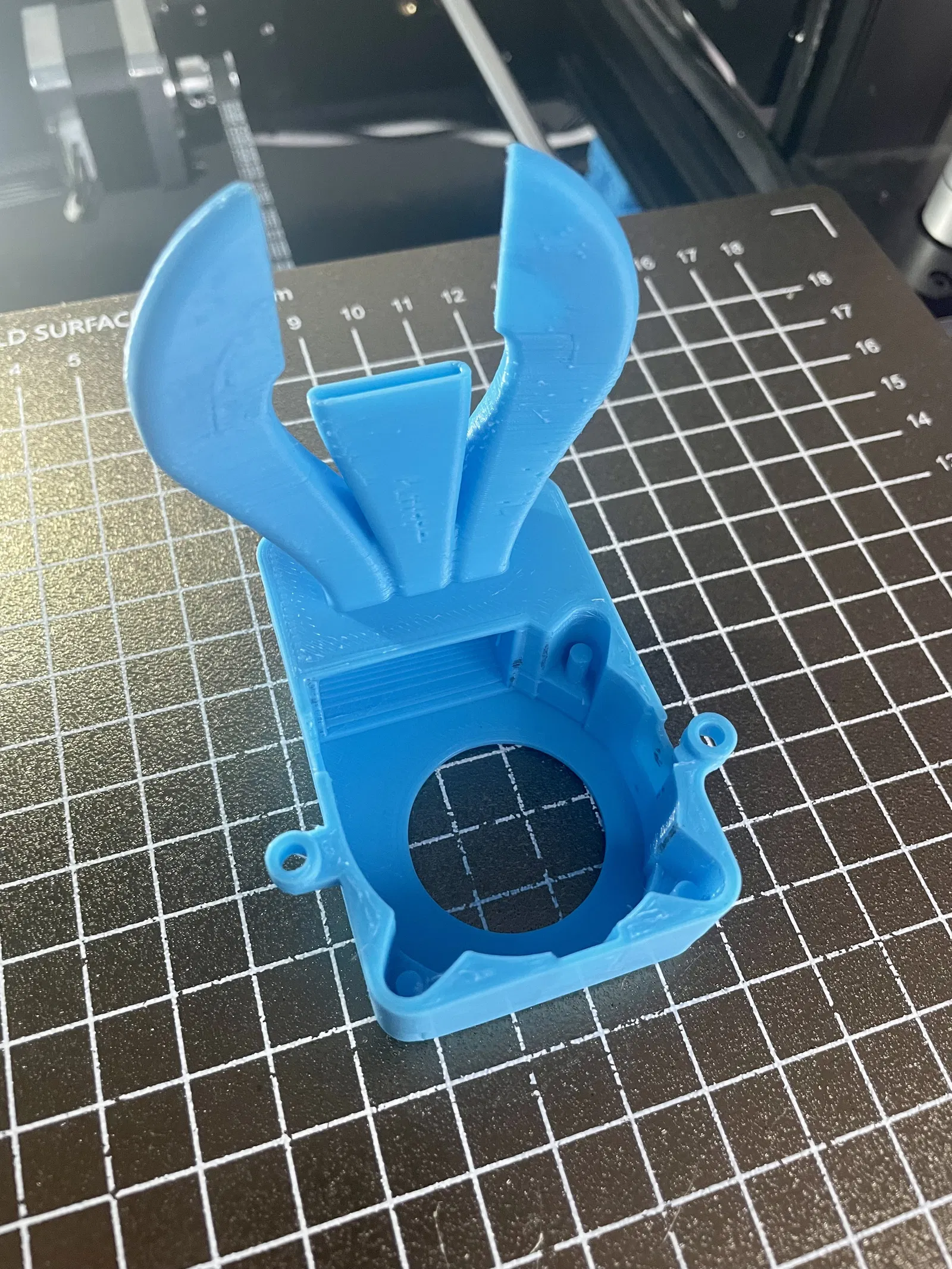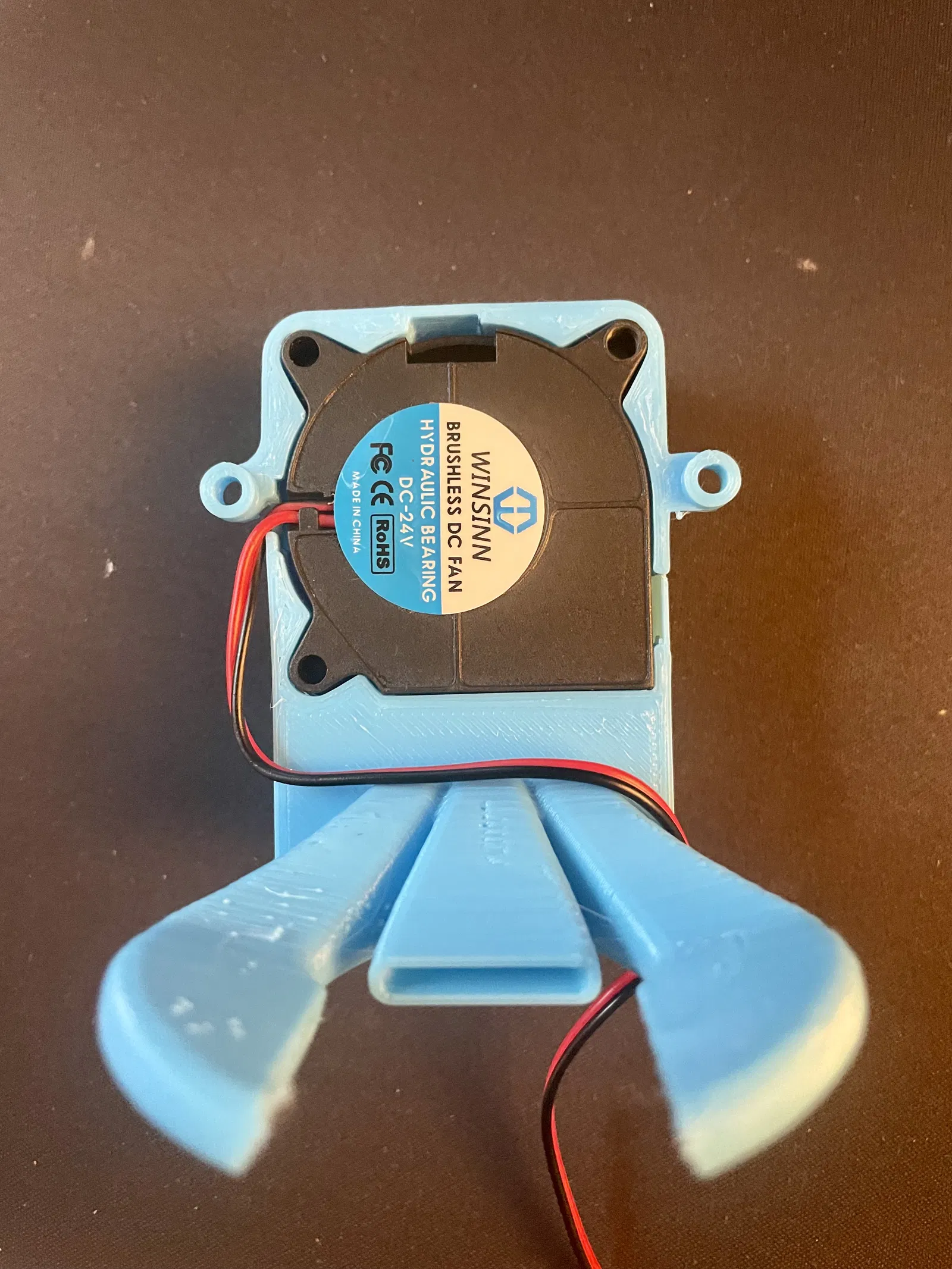 Ốp che gắn quạt 4020 blower cho máy Sovol SV06 để làm mát chi tiết in. Quạt thổi được gắn bằng cách ép vào ốp che và không bị cạ vào hai bên ray. In "úp mặt xuống" gồm 1 phần, cần có support cho các lỗ gắn và khuyến nghị cho phần vát trong ống dẫn khí. Chiều dài dây cáp tối thiểu là 100mm. Ống dẫn khí là bản remix từ Sovol SV06 Fan Duct 5015 Blower Fan của Leander Perez Blanco. Các bộ phận cần thêm: * Quạt 4020 Blower 24V có đầu cắm JST 1.25mm