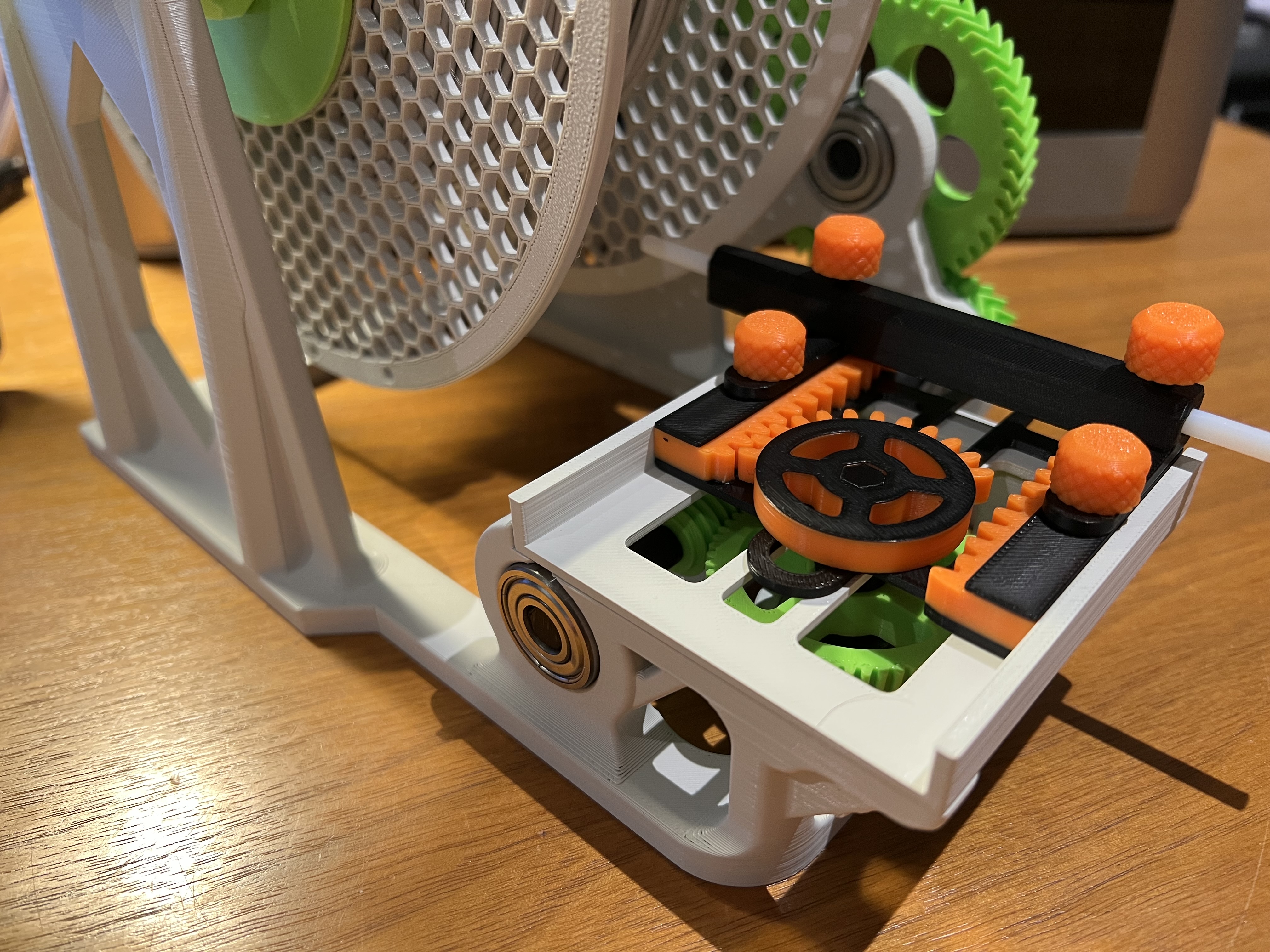 Bộ cuộn dây sợi đốt điều khiển hoàn toàn bằng cơ học cho Máy in 3D Bambu Lab P1, X1, X1C hoặc X1CC. Mẫu có sẵn để tải xuống và sử dụng miễn phí. Lưu ý các cài đặt in được đề xuất để có độ bền và độ chính xác tốt nhất, đặc biệt là cho các bộ phận bánh răng và trục.