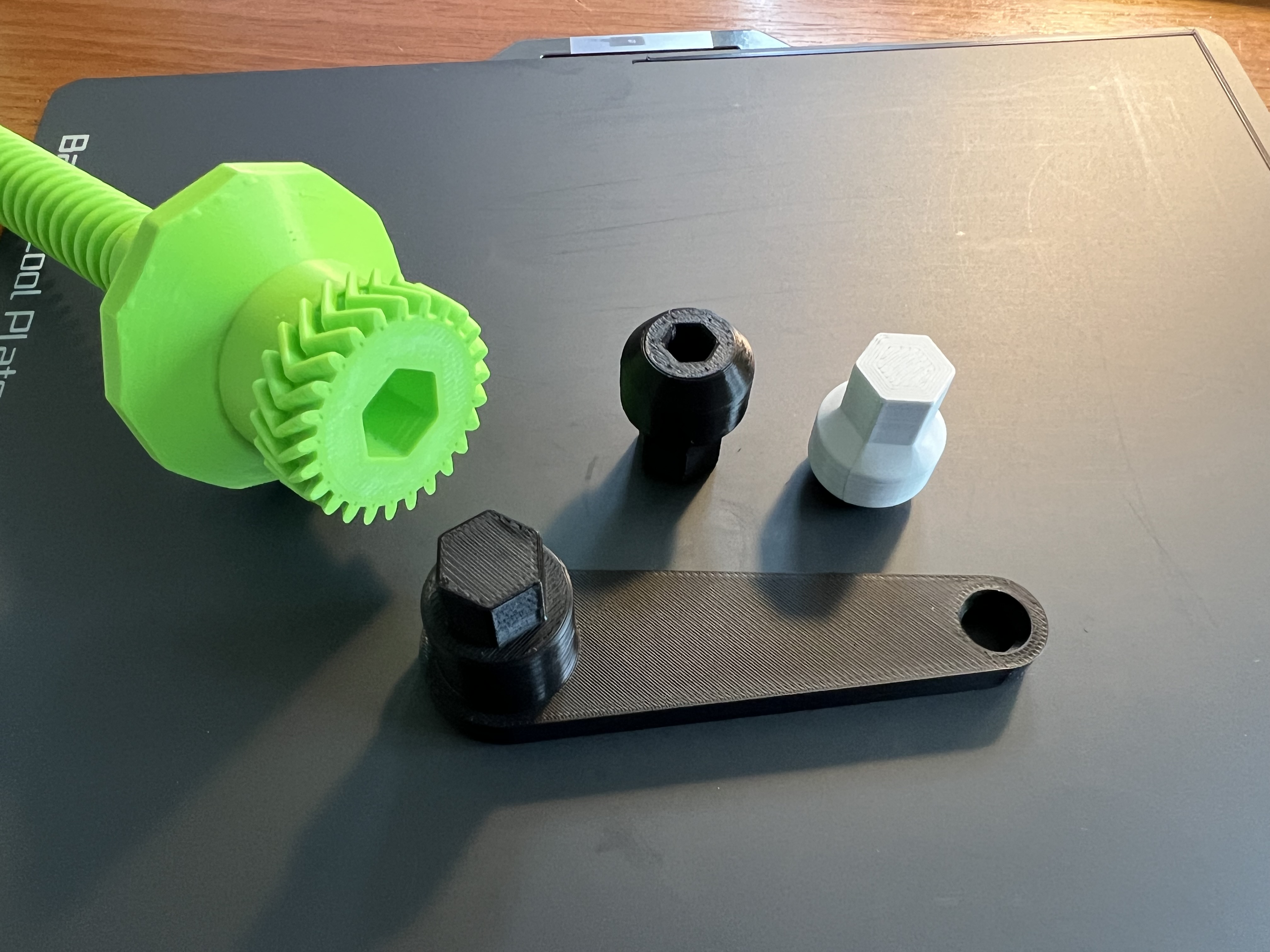 Vui lòng luôn sử dụng tính năng cân bằng mặt bàn & hiệu chỉnh dòng chảy cho mẫu này, đặc biệt là cho các bánh răng và trục! Ít nhất thì Bambu Lab P1 cũng nên được hiệu chỉnh. (linear advance)