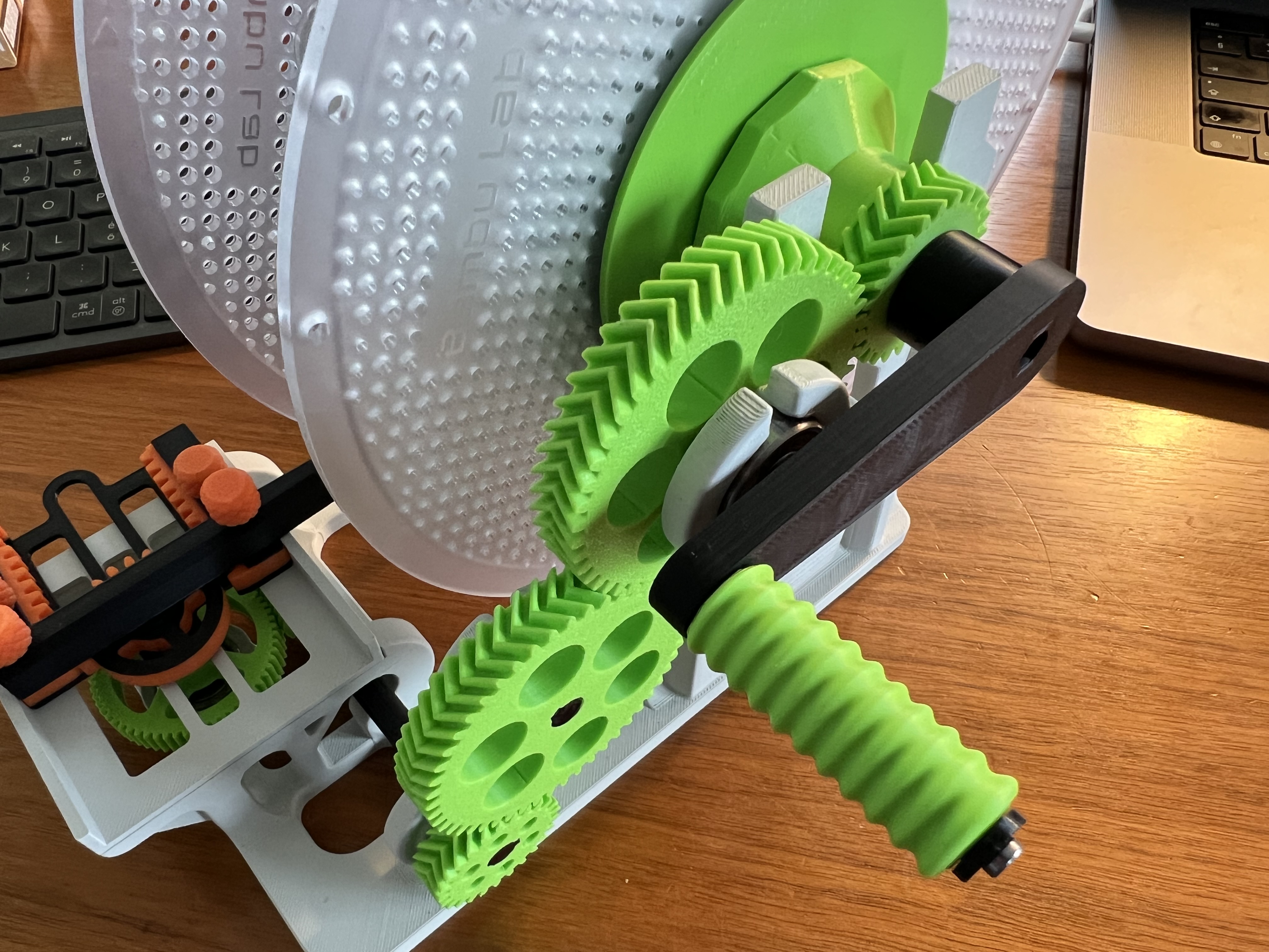 Cập nhật: Tôi đã thử nghiệm "cỗ máy" nhiều lần và điều đó cũng xảy ra với tôi: trục 45 mm (trục dẫn động) đã bị hỏng! 3 lớp thành và 25% độền không đủ!