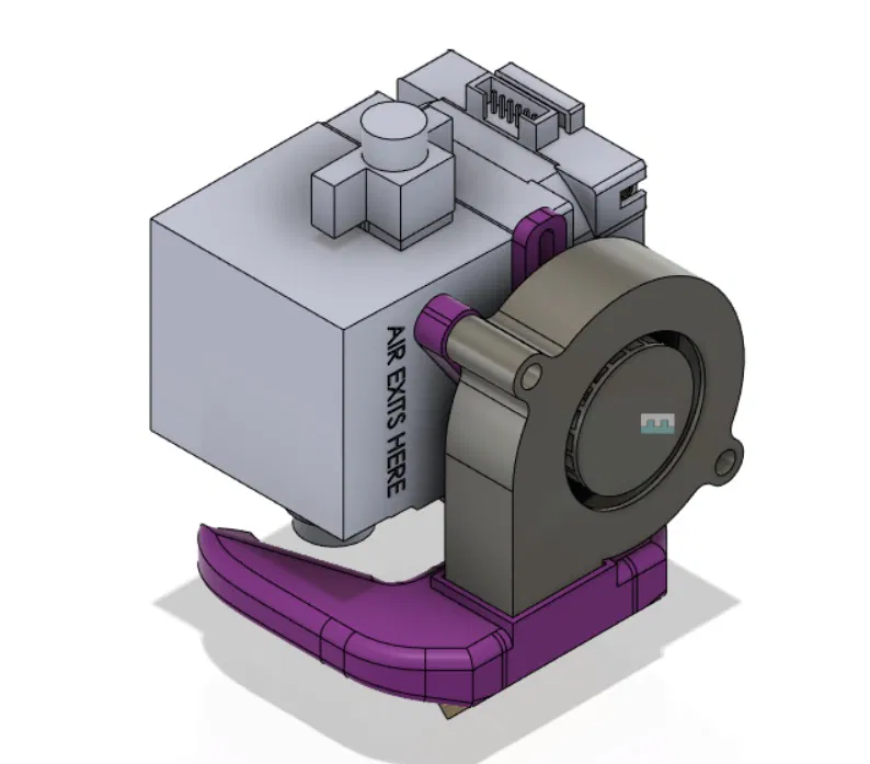 Tôi đã chỉnh sửa ống dẫn quạt Hemera XS của LucidWolf để phù hợp với tấm máy in Ender 3V2 của mình. Bản sửa đổi này bổ sung các bộ phận mở rộng cho quạt 5015 và giữ ống dẫn bằng hai vít M3.