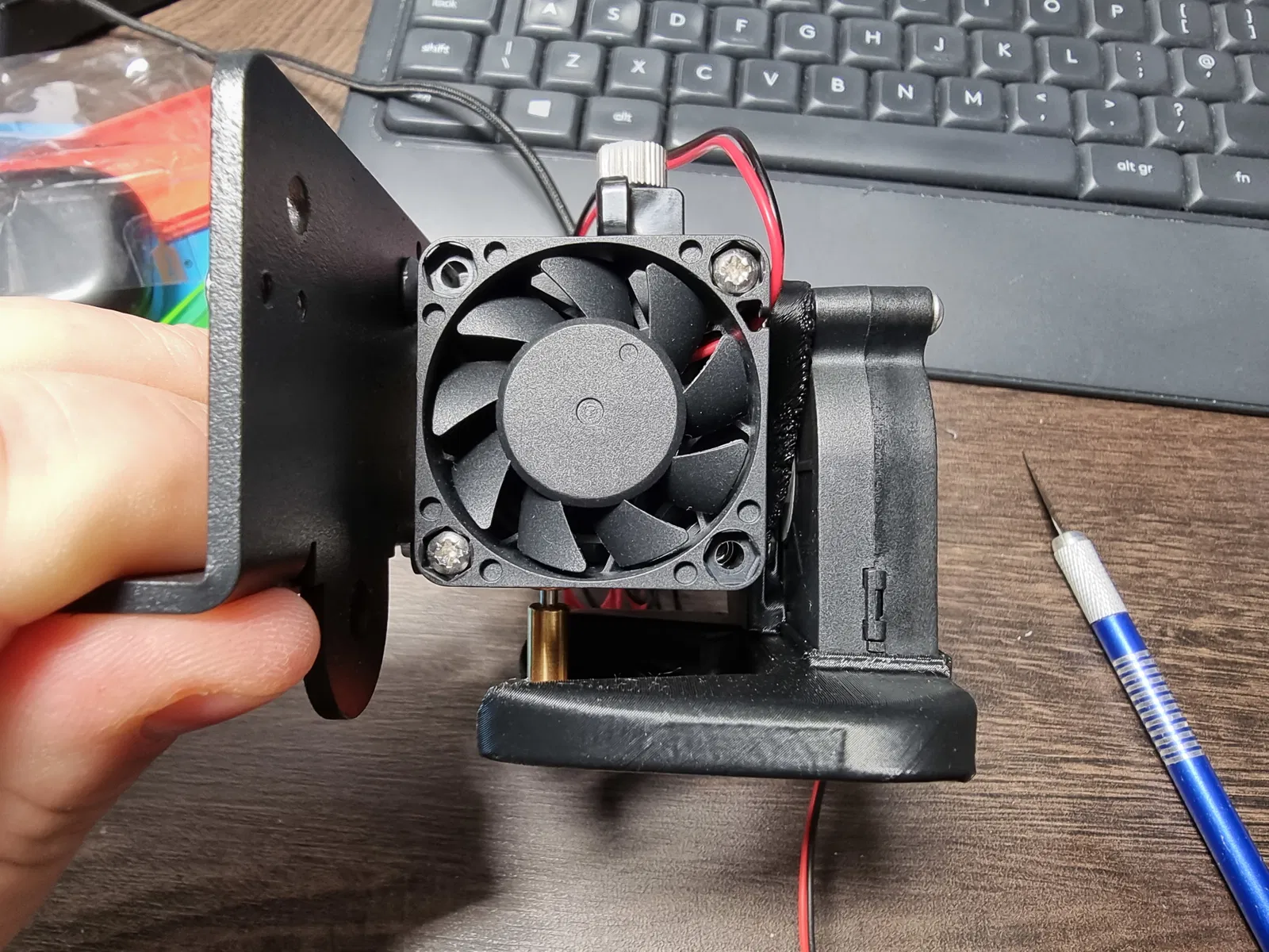 Tôi đã thêm các phần mở rộng để hỗ trợ quạt 5015 và giữ ống dẫn bằng hai vít.