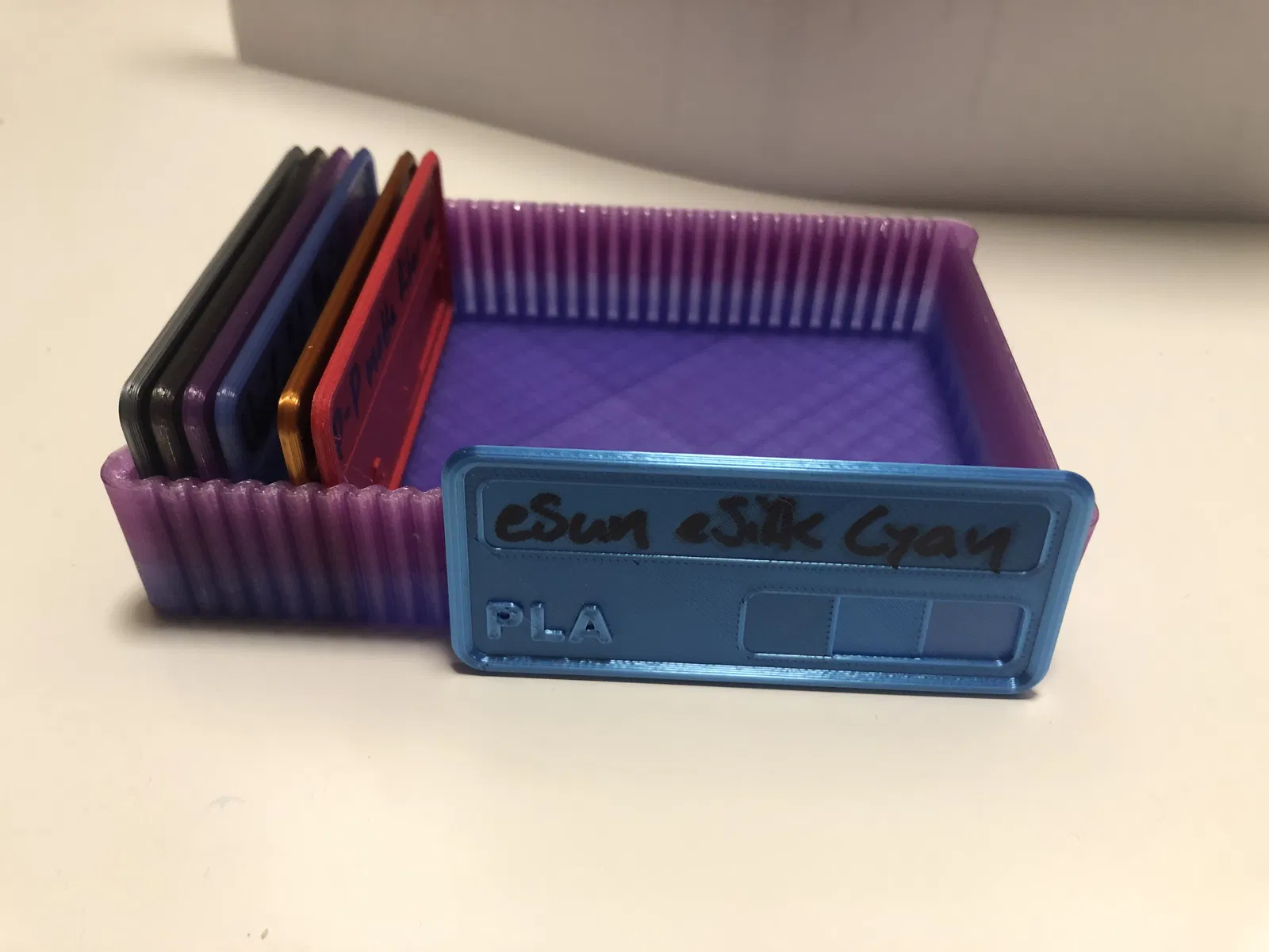 Hộp đựng mẫu sợi nhựa có chỗ cho 30 chiếc, với các trường đo kích thước khác nhau và trường tùy chỉnh cho nhãn hiệu hoặc màu sắc. Bao gồm nhiều loại sợi nhựa như PLA, PETG, ABS, v.v. Cập nhật bổ sung các loại sợi mới và các phiên bản hộp đựng khác nhau.