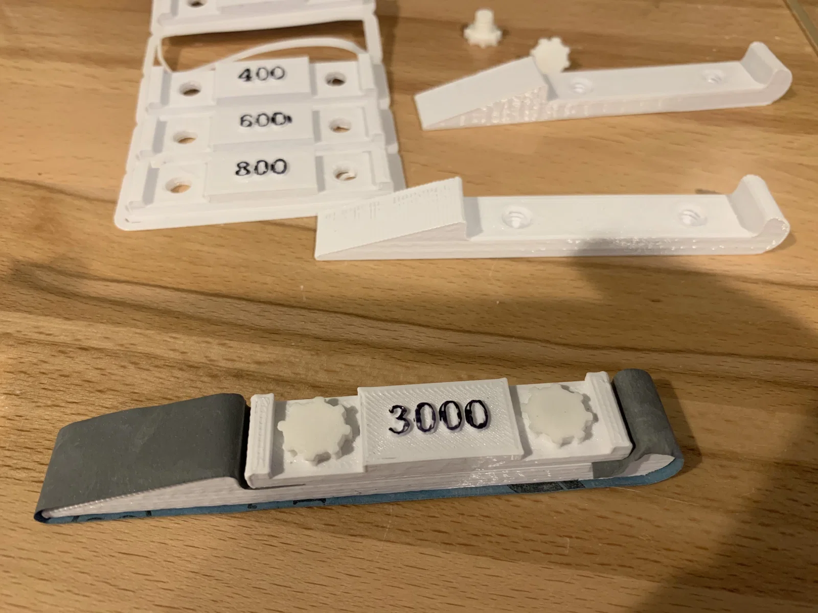 Phiên bản tùy chỉnh của thanh chà nhám, với các nhãn hiển thị độ nhám của giấy nhám (từ 80 đến 3000). Bao gồm mẫu trống, giá đỡ đi kèm và hướng dẫn cắt. Có cập nhật và bản sửa lỗi.