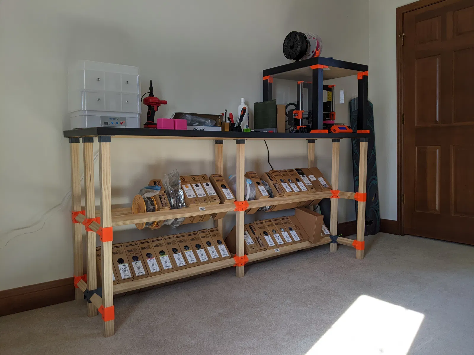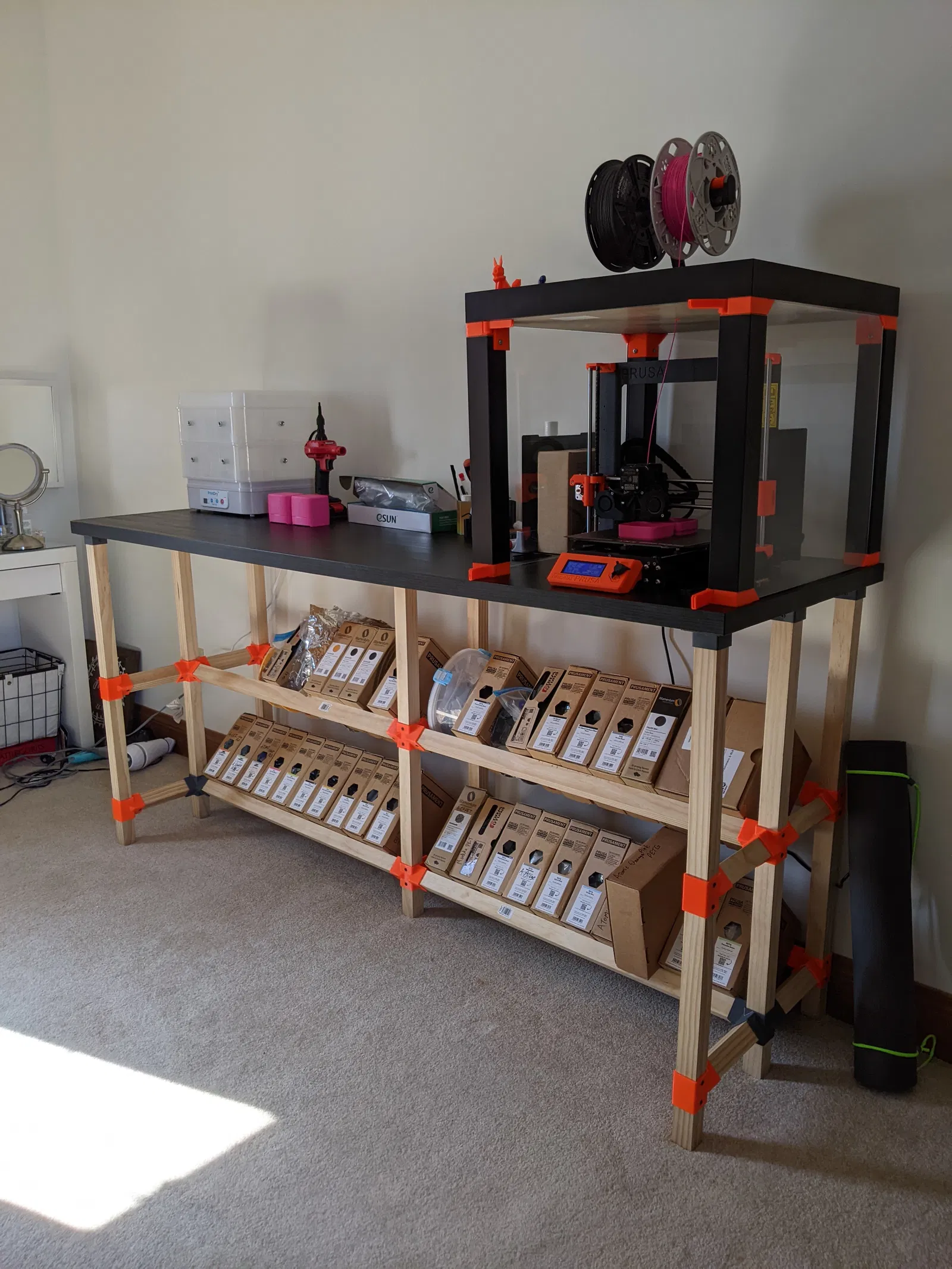Đối với ví dụ của tôi, tôi đã sử dụng một mặt bàn cũ của Ikea làm bề mặt làm việc và kết hợp vỏ Prusa Lack.