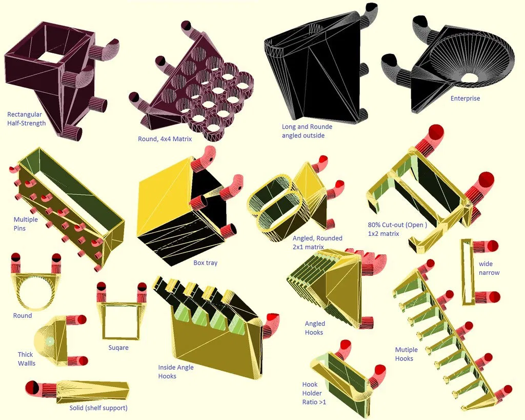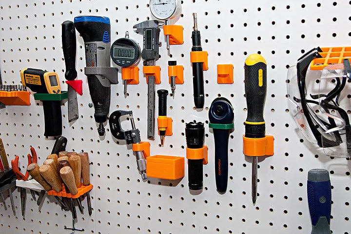 Vô số cách để tạo giá đỡ và hộp đựng tùy chỉnh cho bảng pegboard, hoàn hảo để sắp xếp dụng cụ, bộ phận hoặc đồ trưng bày. Hỗ trợ nhiều hình dạng, kích thước và tùy chọn in để có giải pháp lưu trữ linh hoạt.