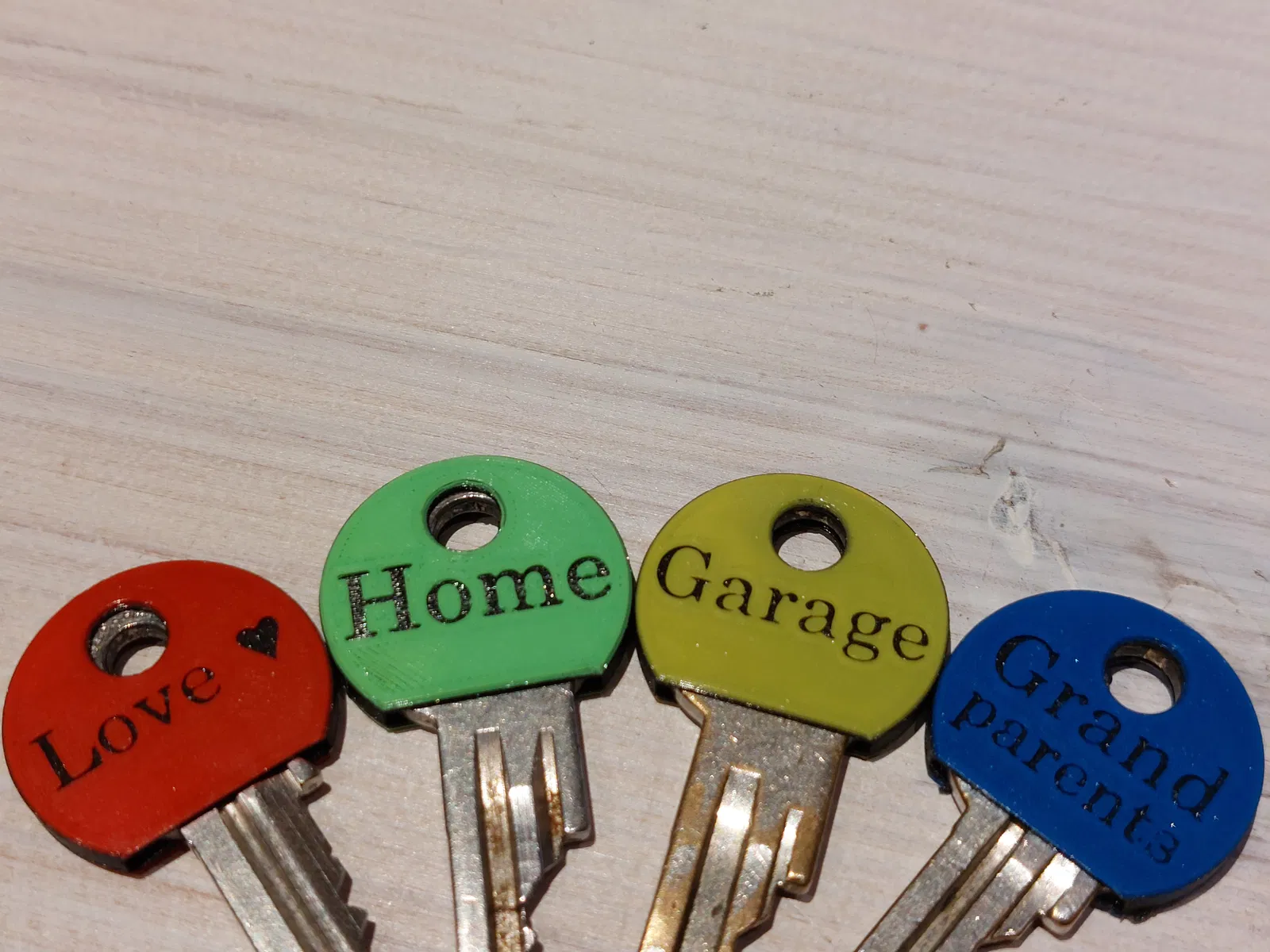 Các vỏ chìa khóa đi kèm với nhãn, có sẵn trong 3 phiên bản: vỏ tròn (23mm và 24mm) và vỏ hình chữ nhật. Bản dịch bao gồm các mẹo in ấn chi tiết và các tệp f3d miễn phí để tùy chỉnh.